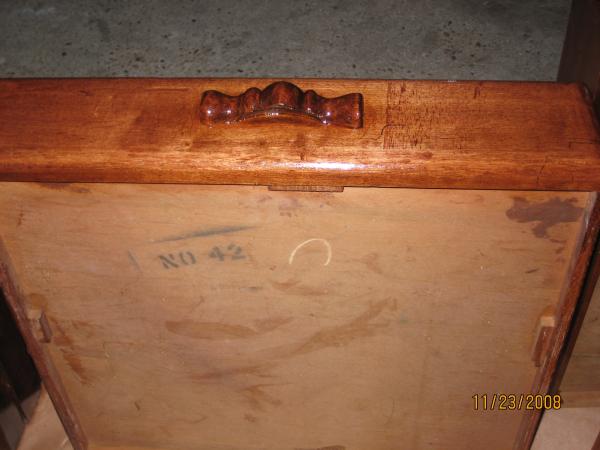 this is a wood desk. it has a built in bookshelf on the side of it. it has no names or markings anywhere. Under the middle drawer it has a N42 stamped in green. wondering how old it is.