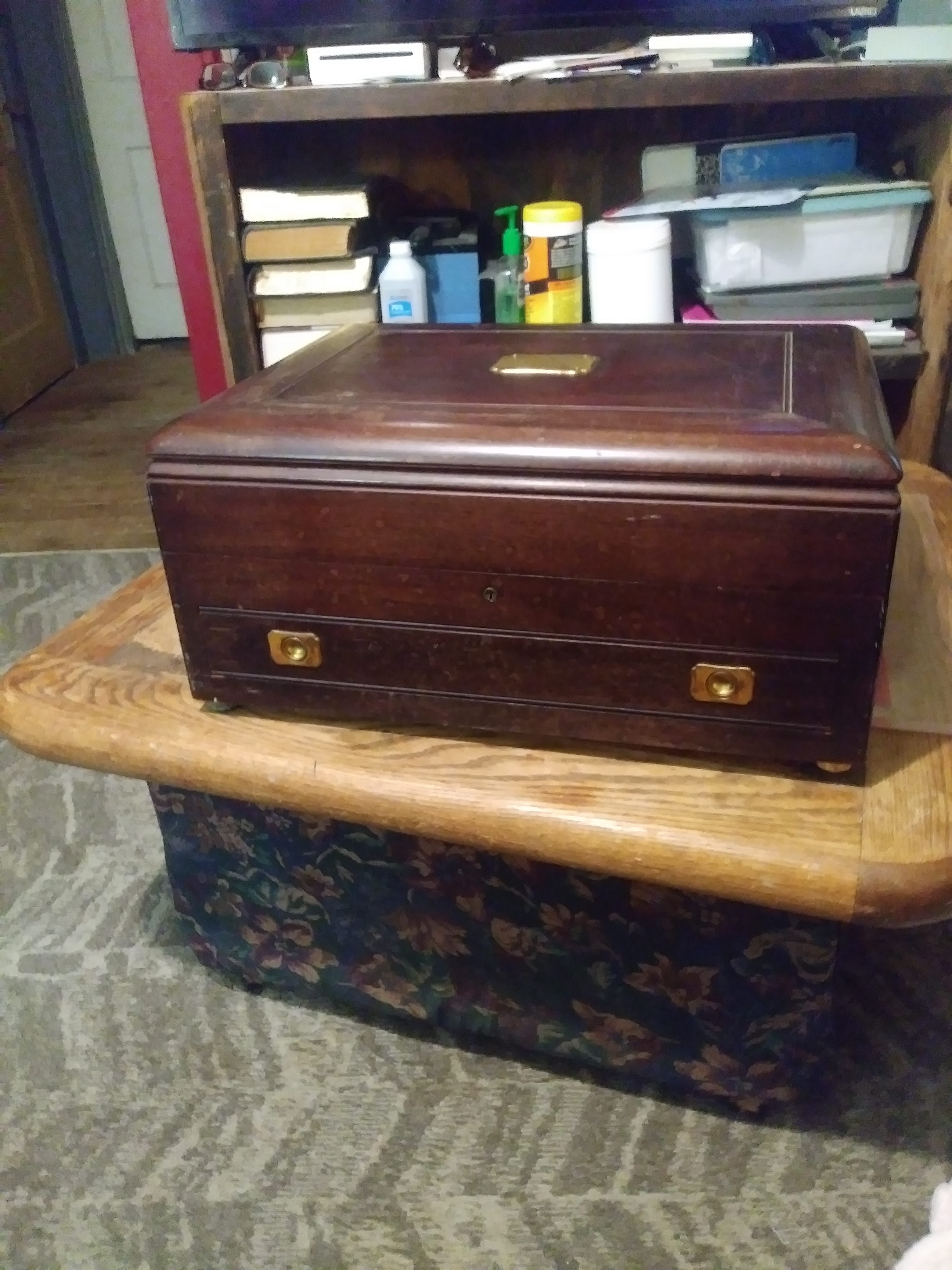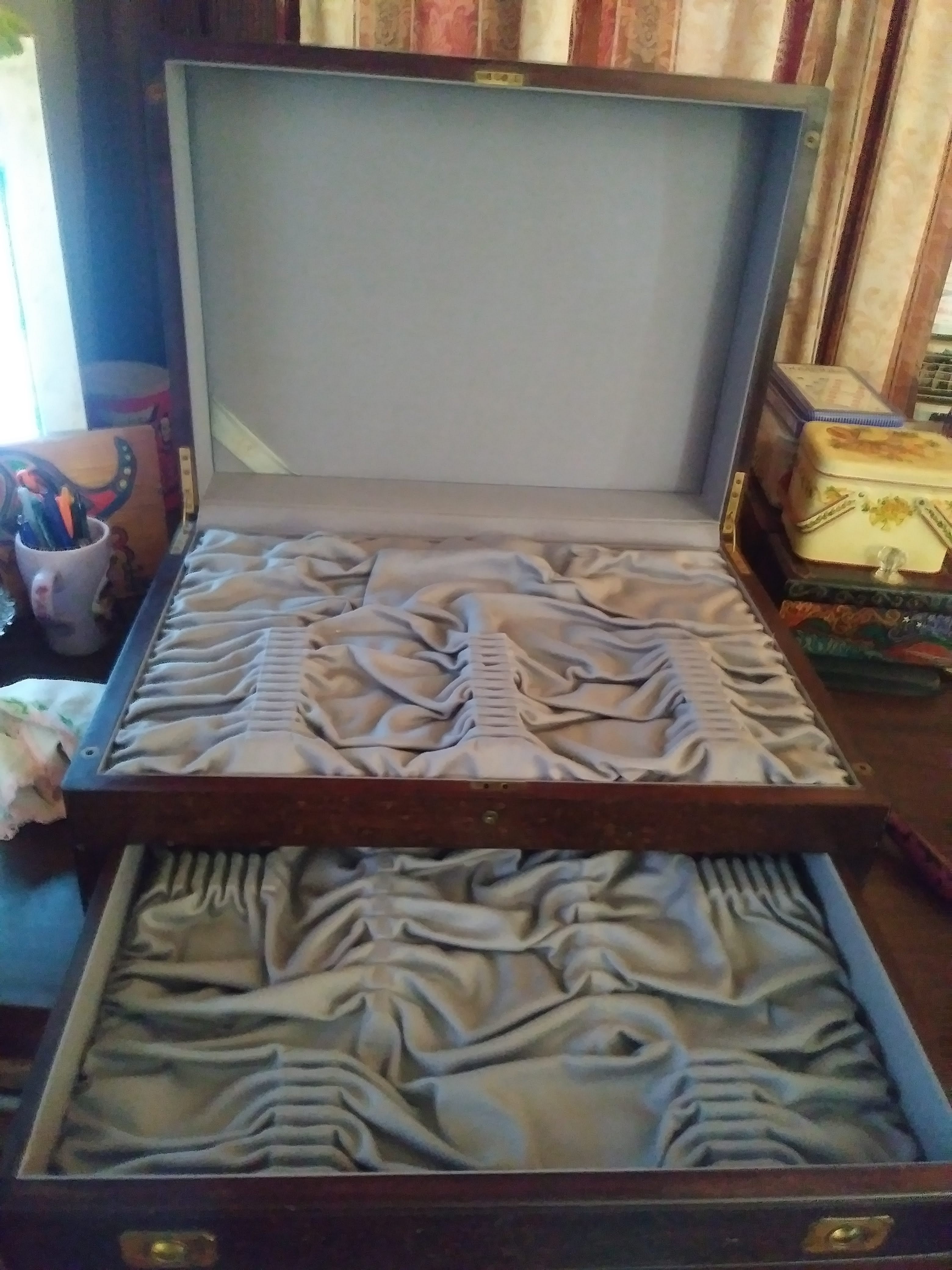 I bought this heavy beautuful silverware chest. The lady told me it was old. Said it was her grandmothers. She was in her 60's.