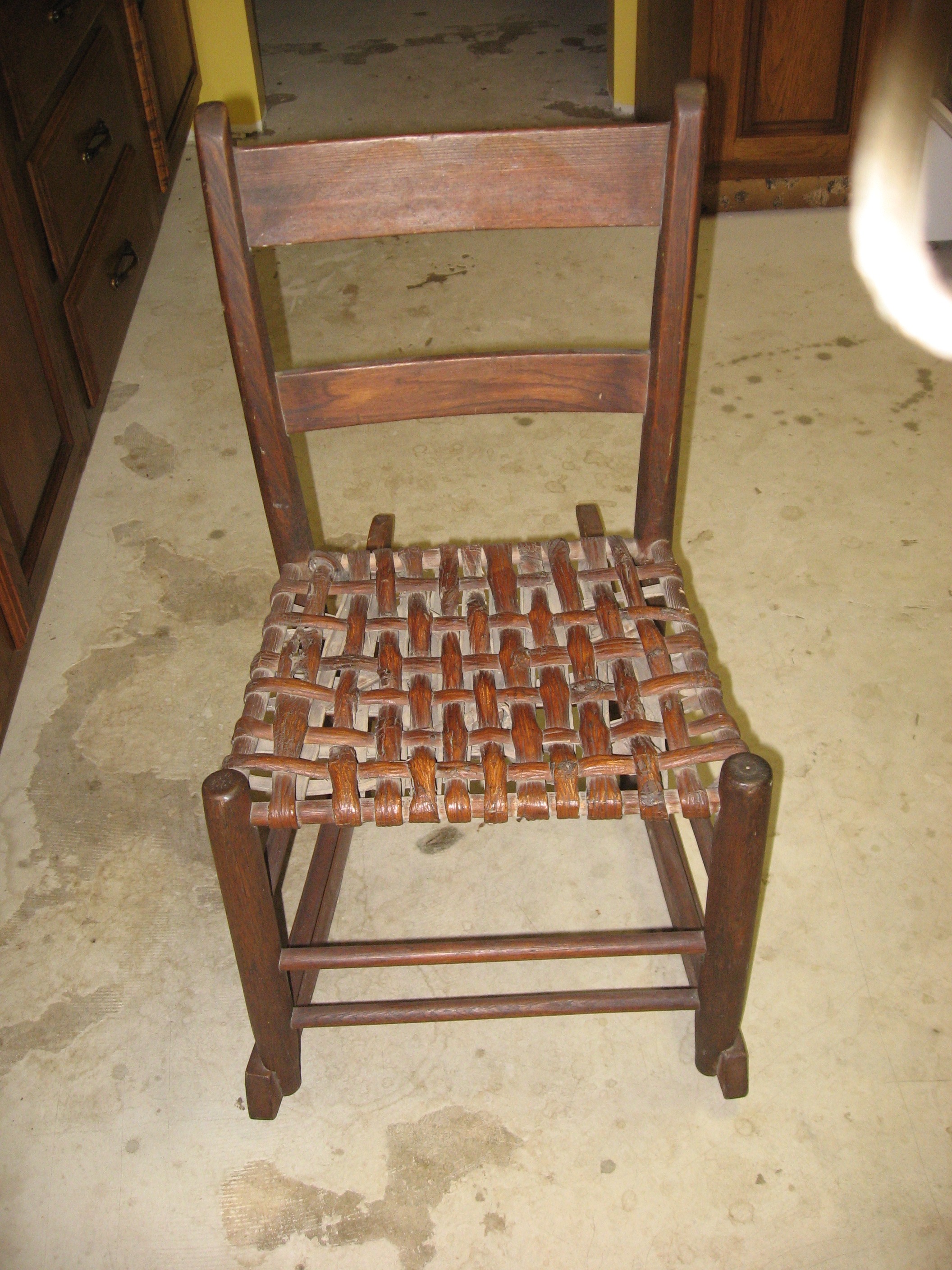 The chair is in very good condition and rocks easily.  The seat is very obviously hand woven with some kind of wood vine - not cane.  It is very sturdy and can hold quite a bit of weight.  It sits lower to the ground like a sewing chair.