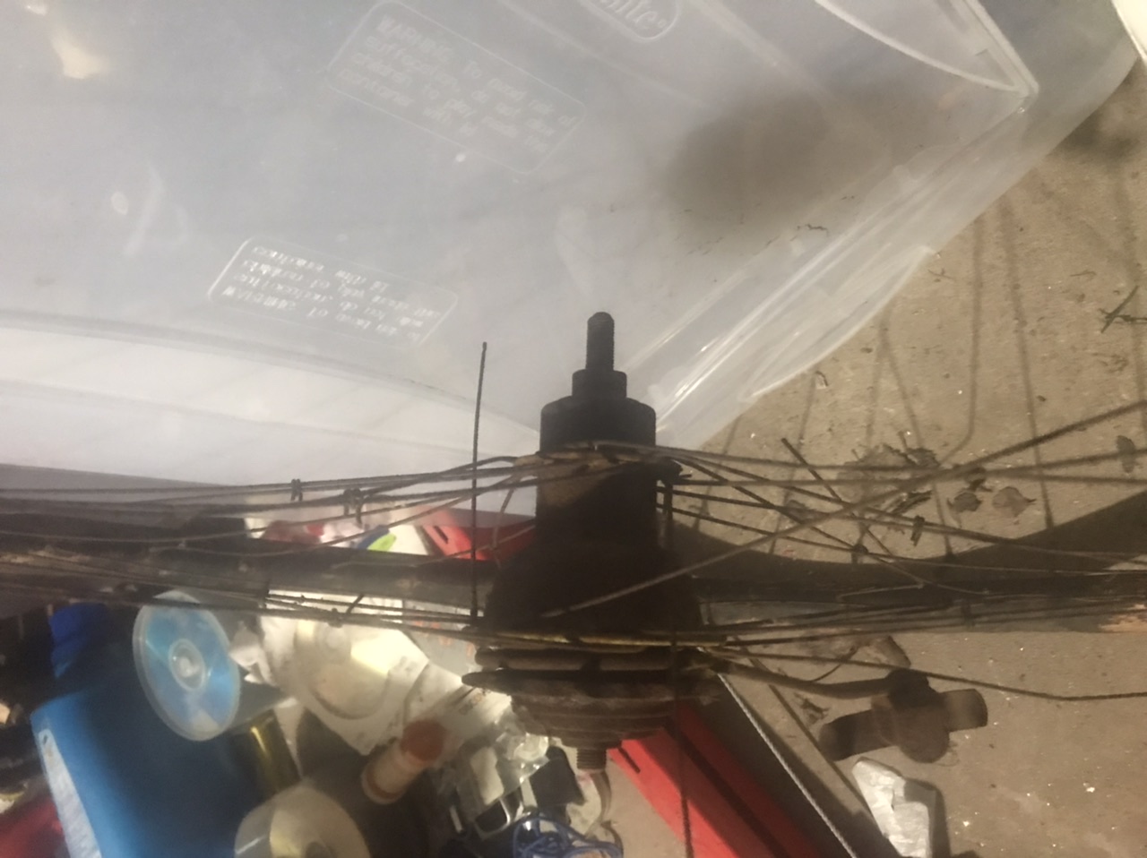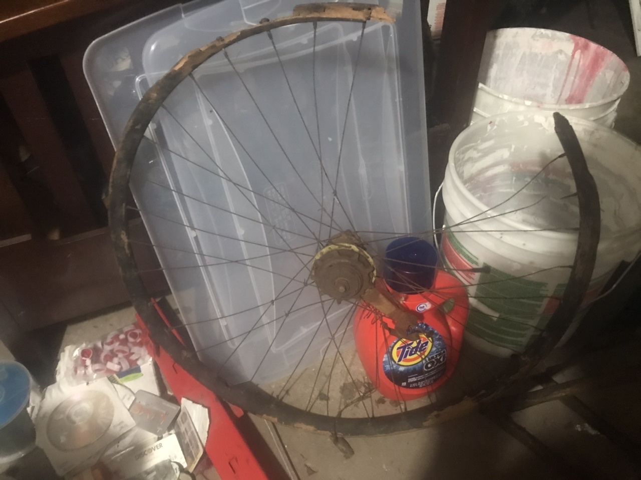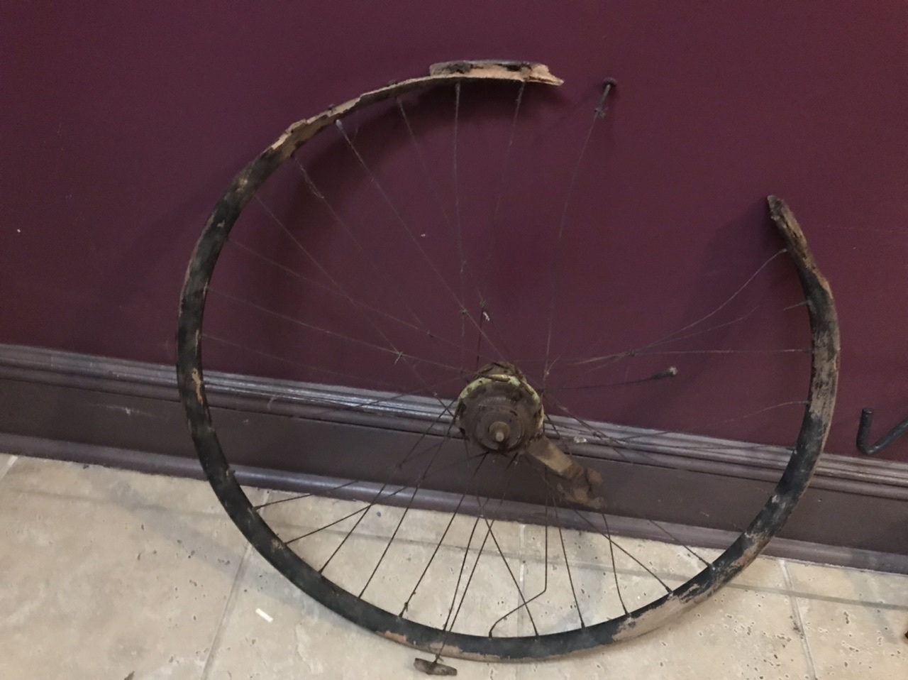 Wooden bicycle rim found with bike that had American Flyer patch on front.