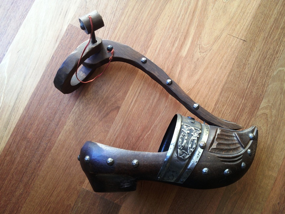 I have an unpainted Wooden Clog that is decorative (not meant to be worn) with metal pieces and a long wooden piece coming out the top that has a small wooden hammer and horseshoe-like piece attached. Has "Made in France" carved on bottom. I just want to know what this is more so than a value. Here are some pics;