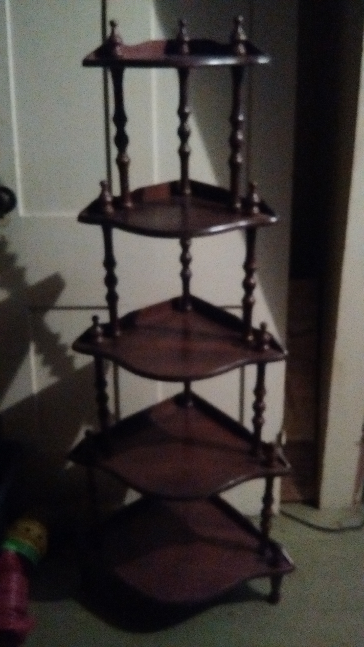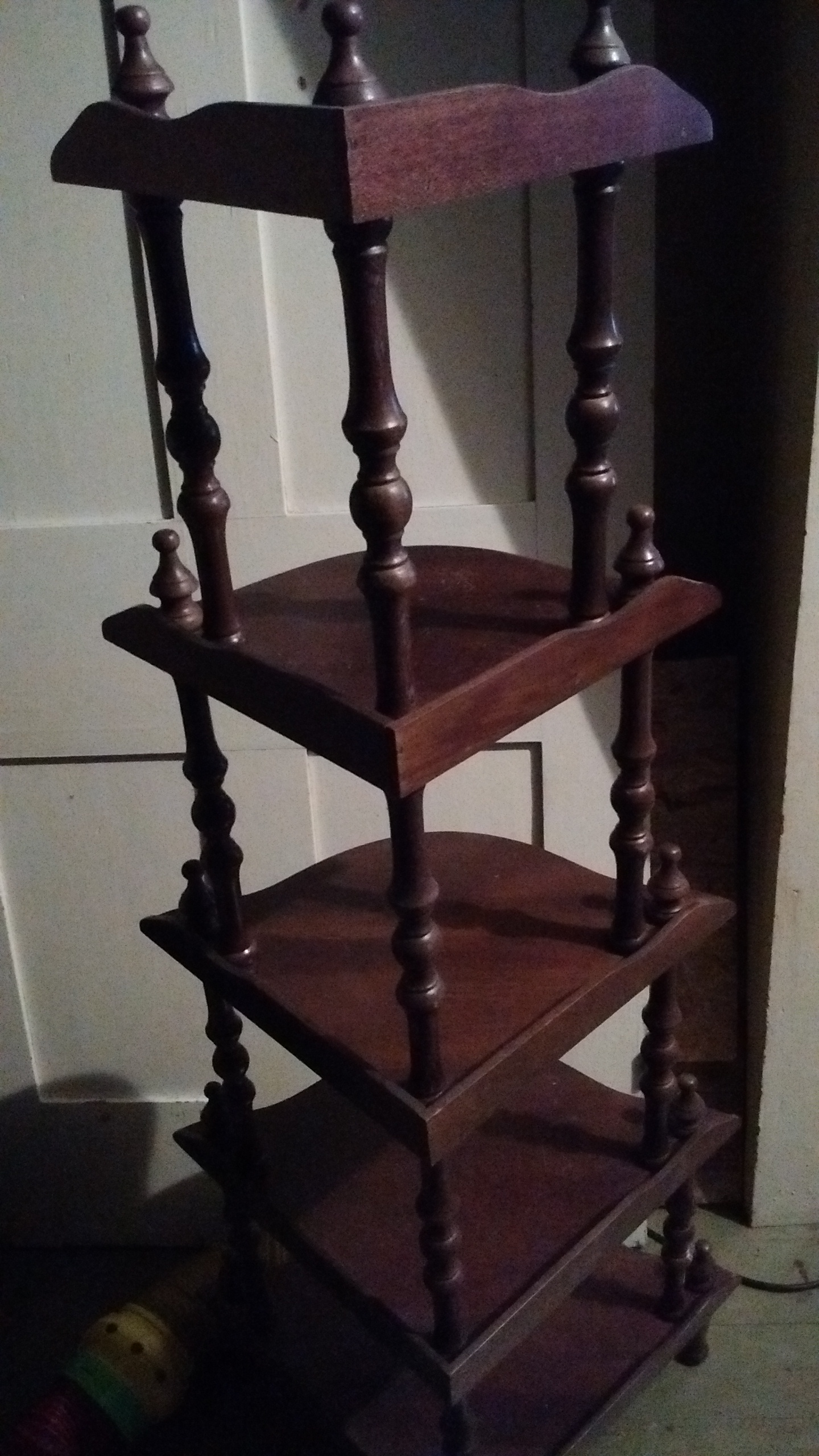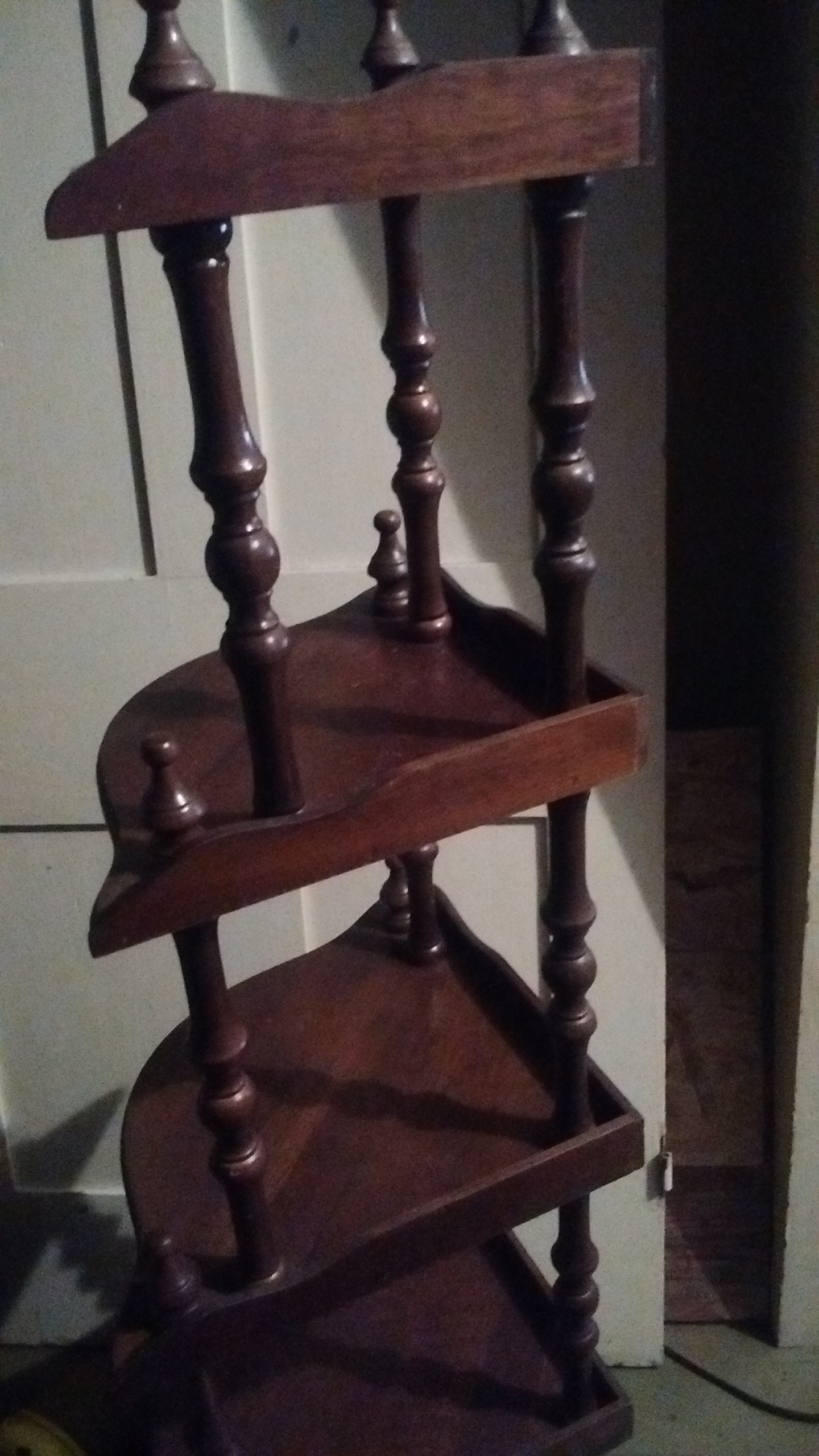 Recently purchased this wooden corner shelf and wondered if it's an antique. My grandmother had a similar price which her grandmother had purchased in the 1800's. There are no stamps or marks of a manufacturer.