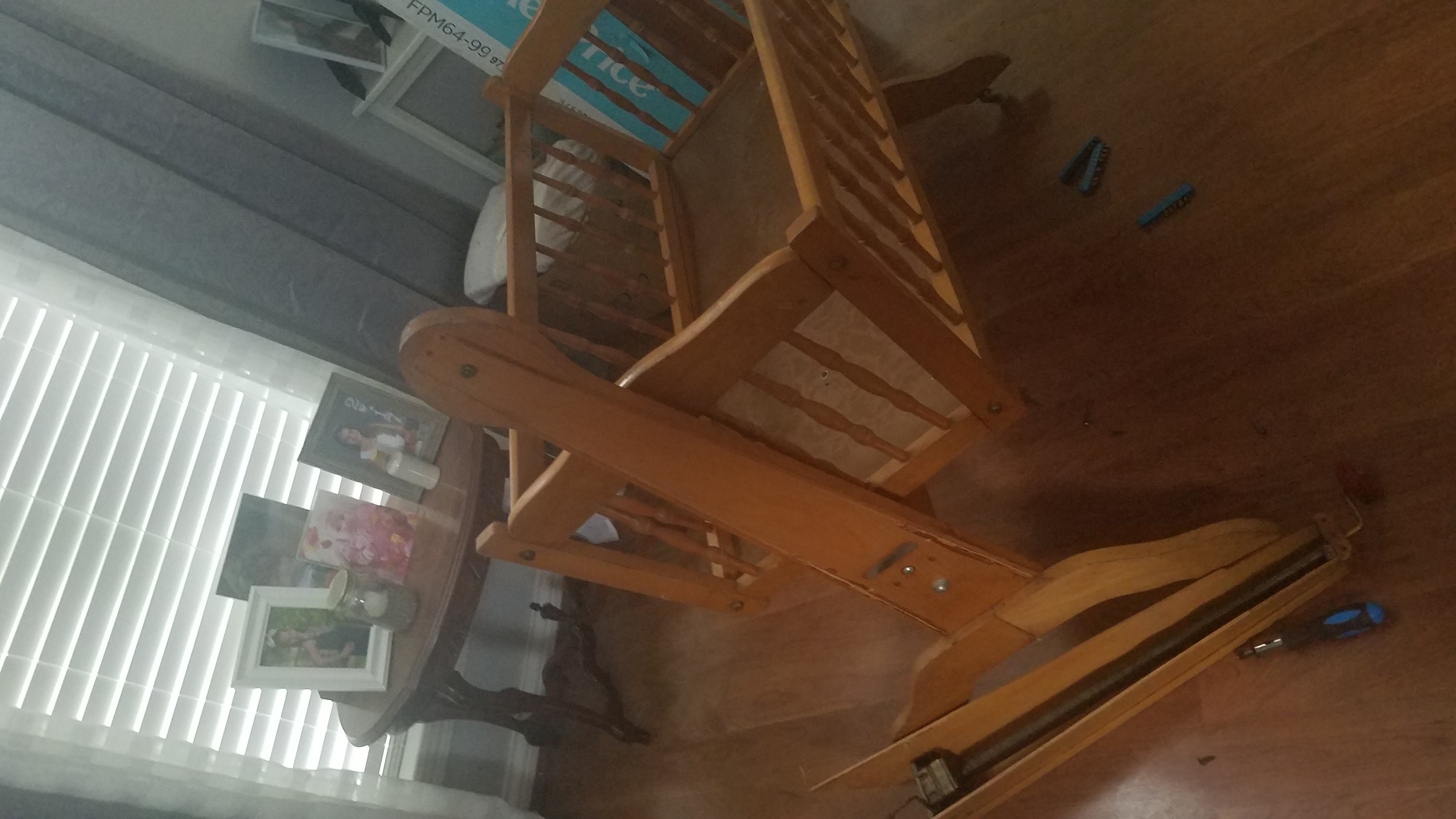 This is a wooden baby cradle/bassinet that has a spring powered hand crank to make it swing back and forth. It is a Jenny Lind style and is at LEAST 60 years old. The hand crank was removed and is in the floor next to the cradle in the pictures. It was taken off to fix. It goes on the end of the cradle. I'm looking for more information and approximate value.