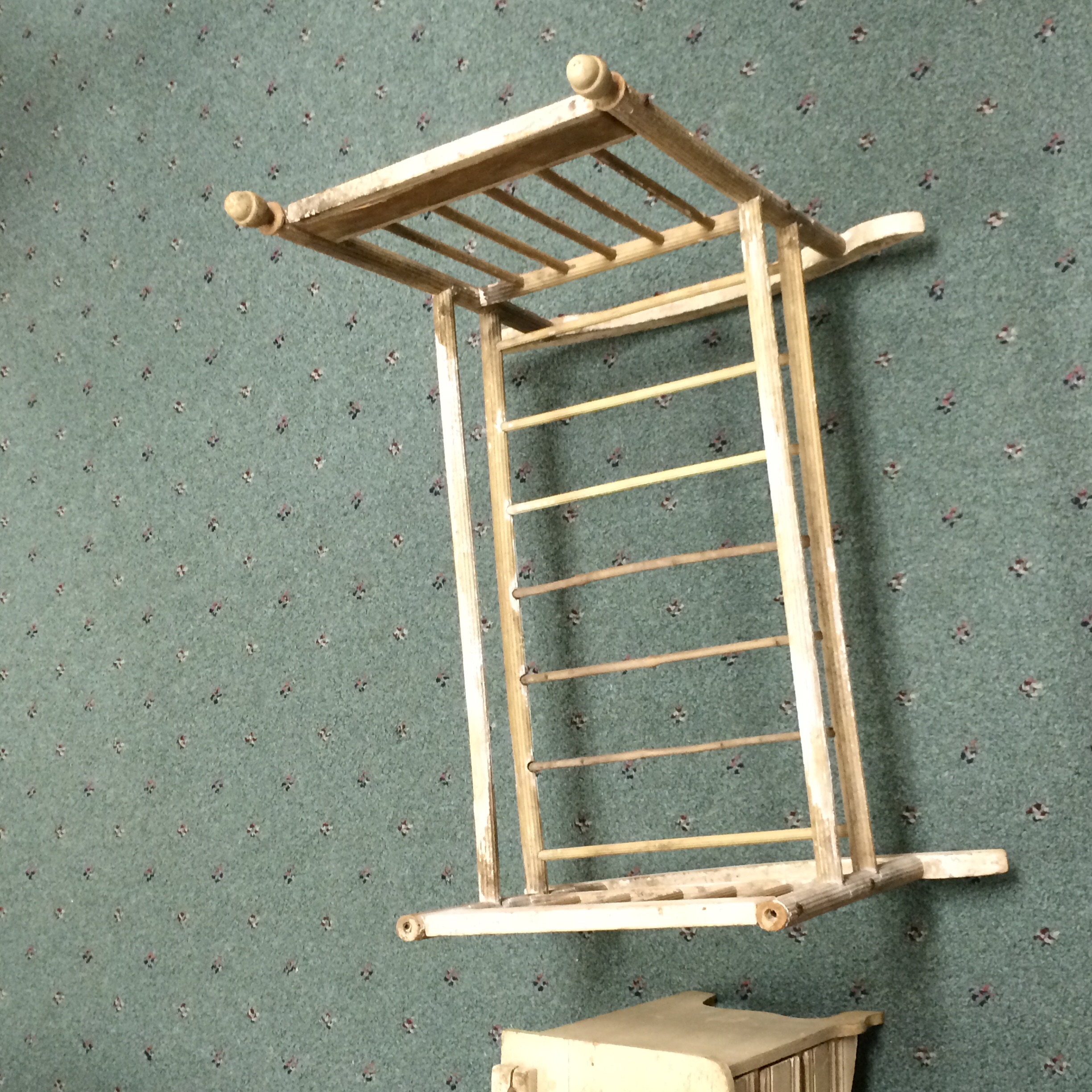 Vanity has mirror and design on the drawers and the cradle has a very unique design of the wood