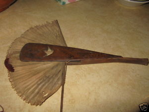 A string is connected to the fan with a tassel and it once had a mirror attached.