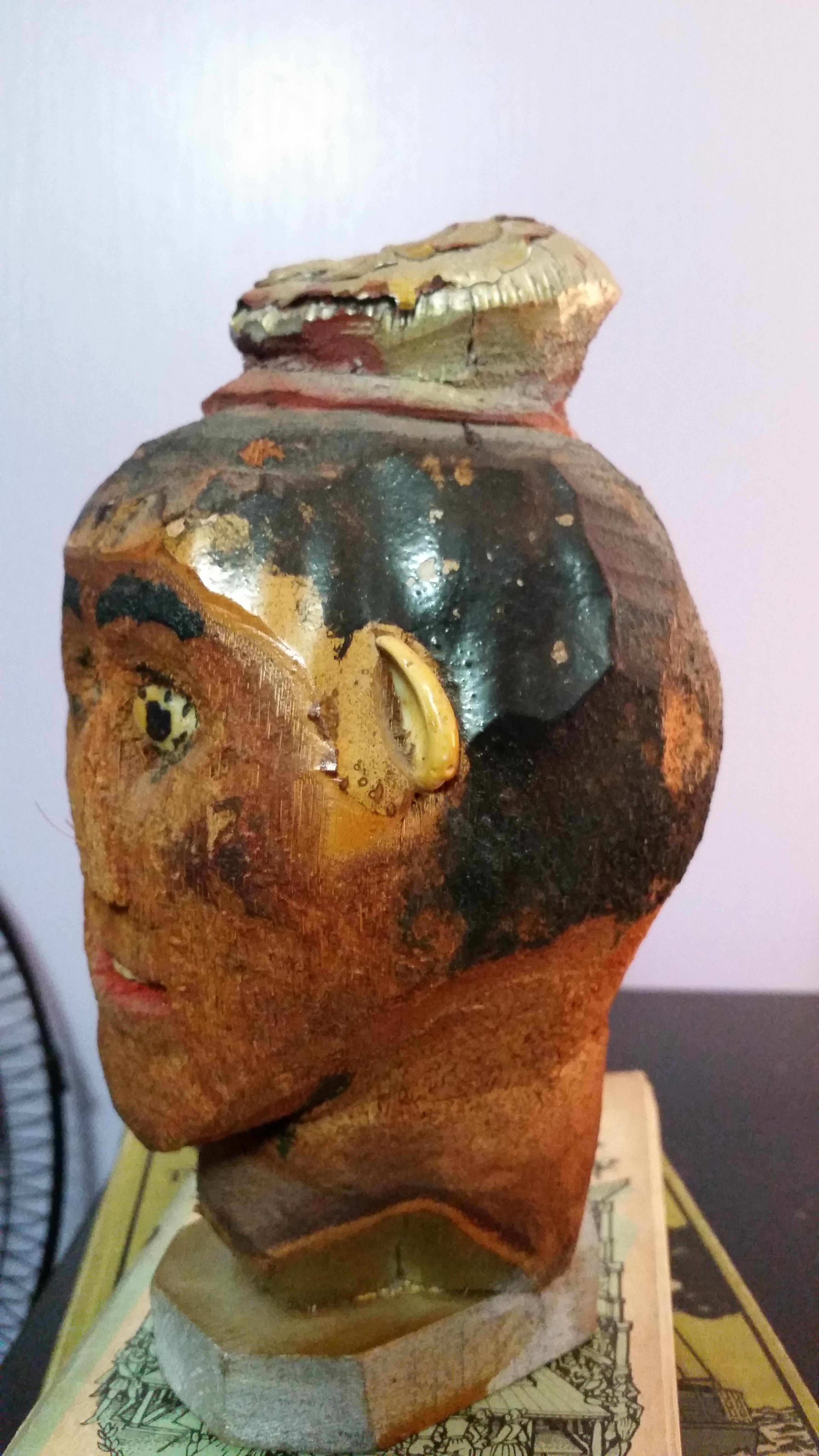 This is a wooden head. The eyes and ears appear to be made out of some other hard material. Does anyone have and information on this?