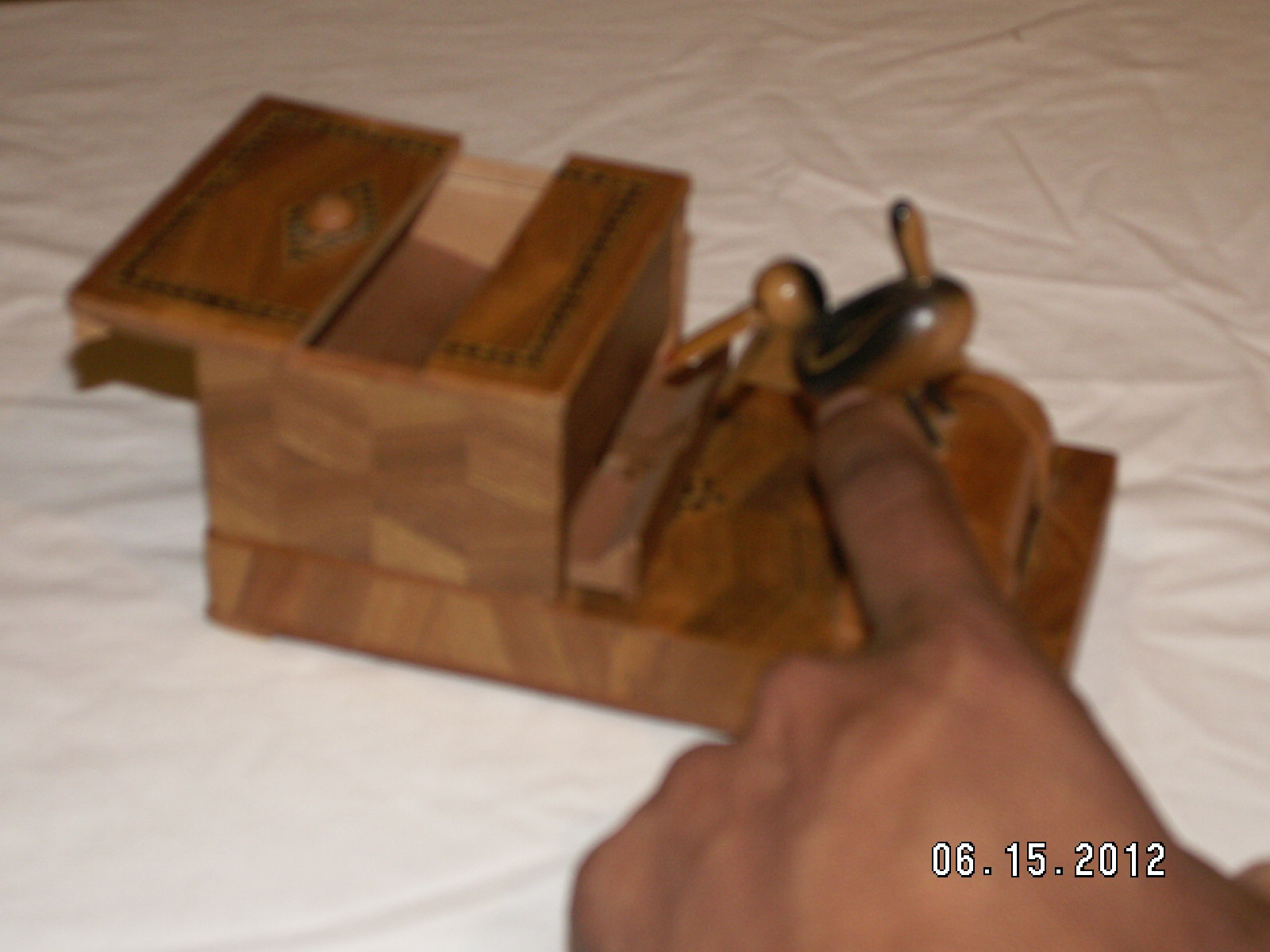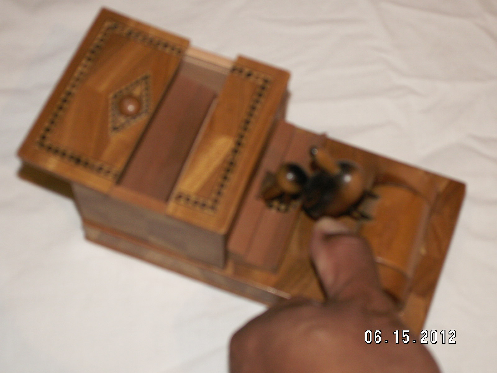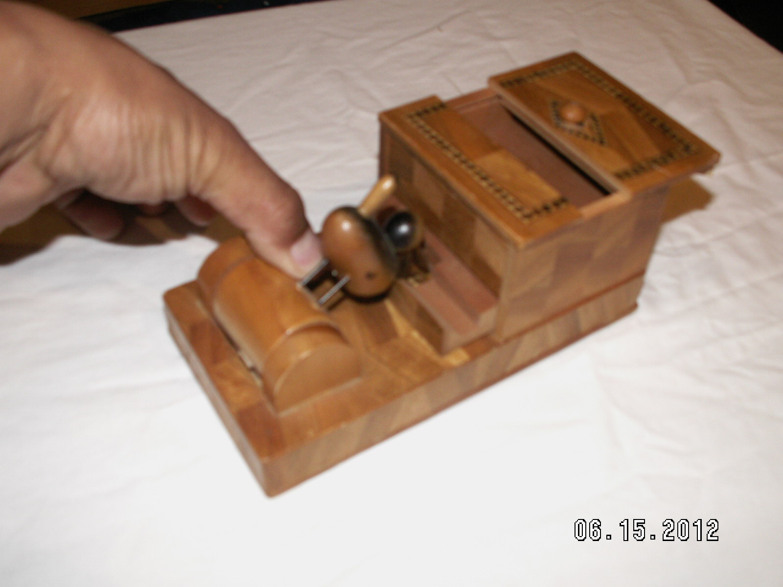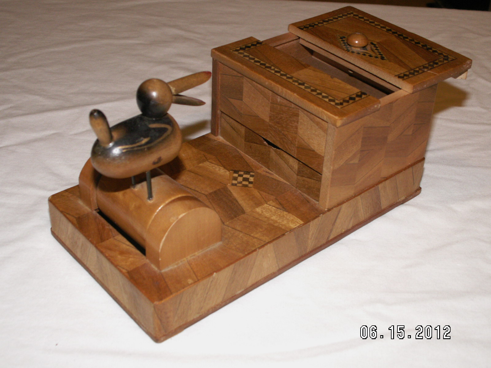 Very unique jewelry box with a movable bird. Not sure who made it and when, but very unique craftsmanship.