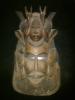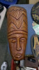vintage Mexican goat or devil mask with horns. Some traces of red paint on mouth,eyes and nose