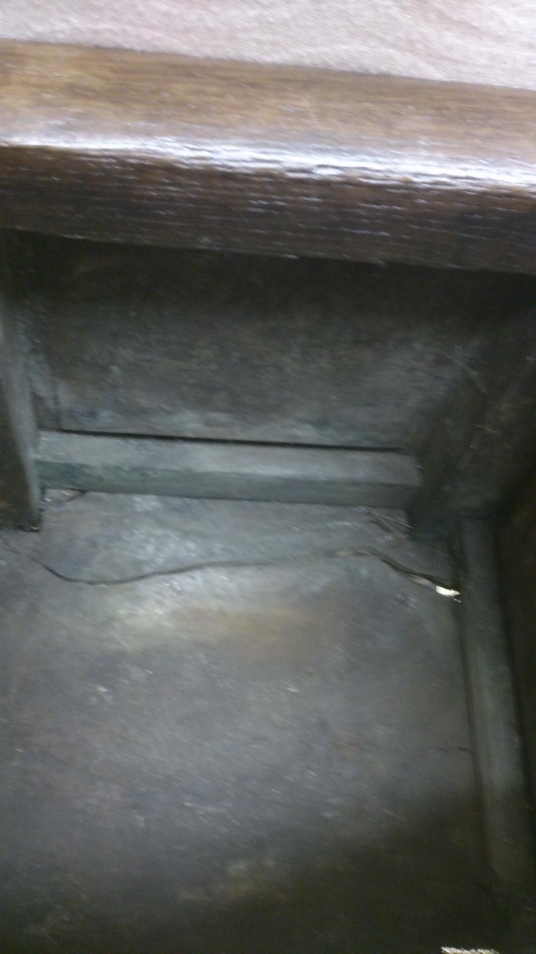 I know nothing about this box apart from where it came from, The Falcon Hotel in Uppingham, Rutland. The frame is solid, heavy wood and the panels are only 2-3mm thick and have been fitted afterwards. There are a few bad cracks but nothing feels loose or as if it's falling apart. Not sure if I want to sell at the moment, I am interested to know it's worth, if any.