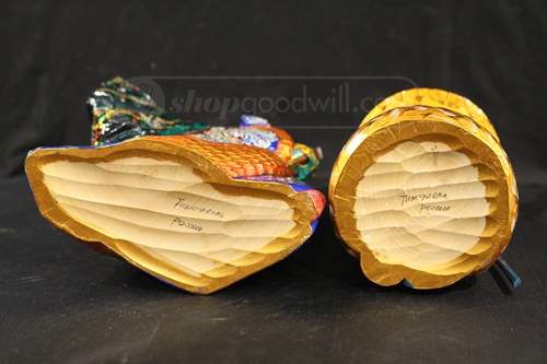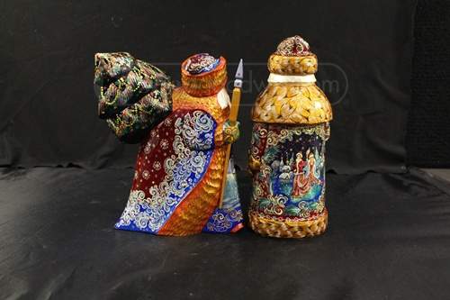 Description I am looking into buying these s Santas. They are about 4x4x8". They look to have a beautiful design and picture on one side. Horses and sleigh on on one and people on the other. Beautiful colors.They also are signed by the same artist. Could you tell me the artist and approximate value of them from these 3 pictures. Thanks.