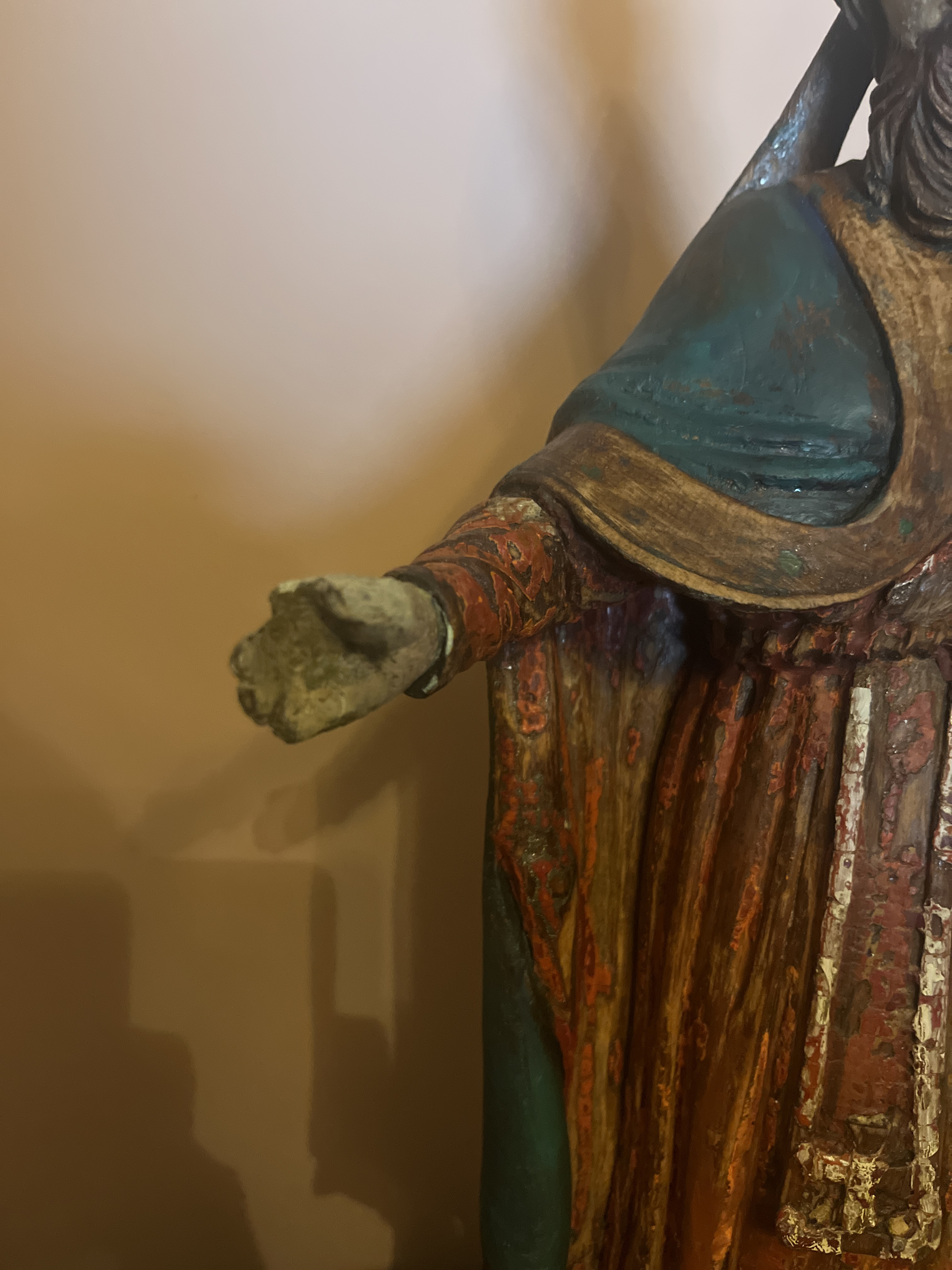 Old wooden statue of a saint with polychrome.