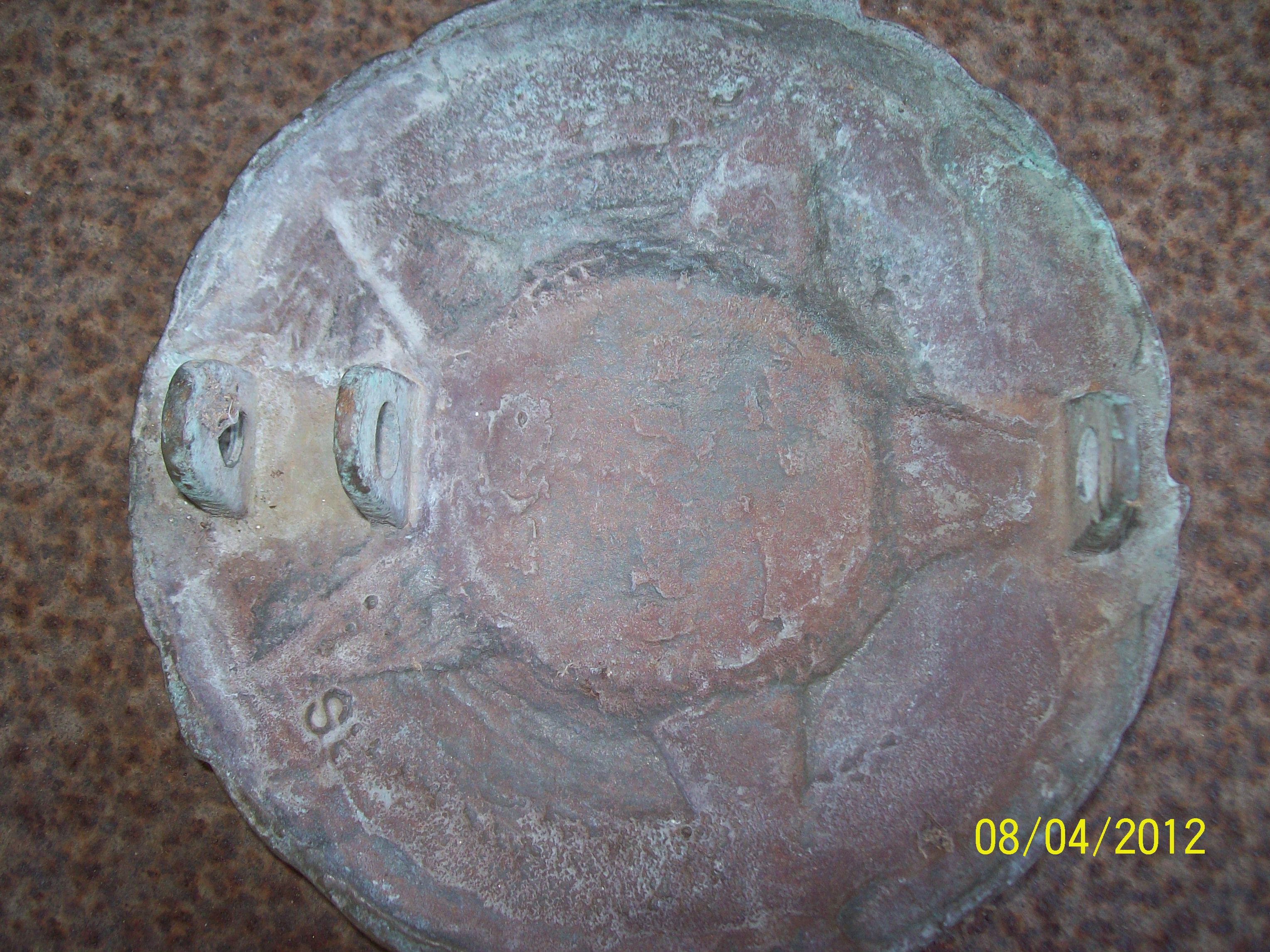 I found this Brass 6" round plackard under my grandfarther shed.