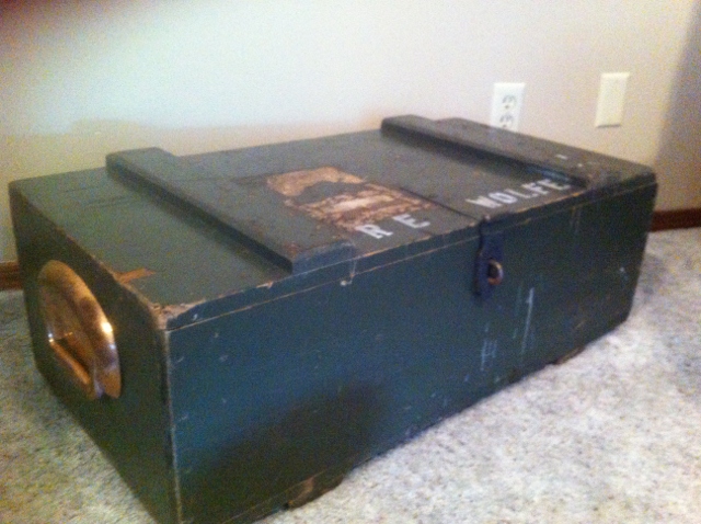 This footlocker is different than I have been able to find.  Brass handles.  There is a stamped number on the inside top right corner of  "R-2288".  My father in law's name is on the top.