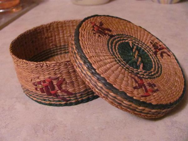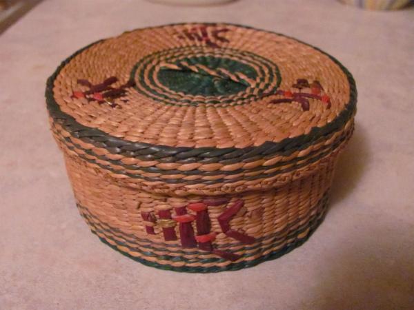 This basket was given as a gift in 1940 in Arizona. Was thought to be a Navajo or Zuni "dreamkeeper" basket, but have since been told it is a Chinese basket.