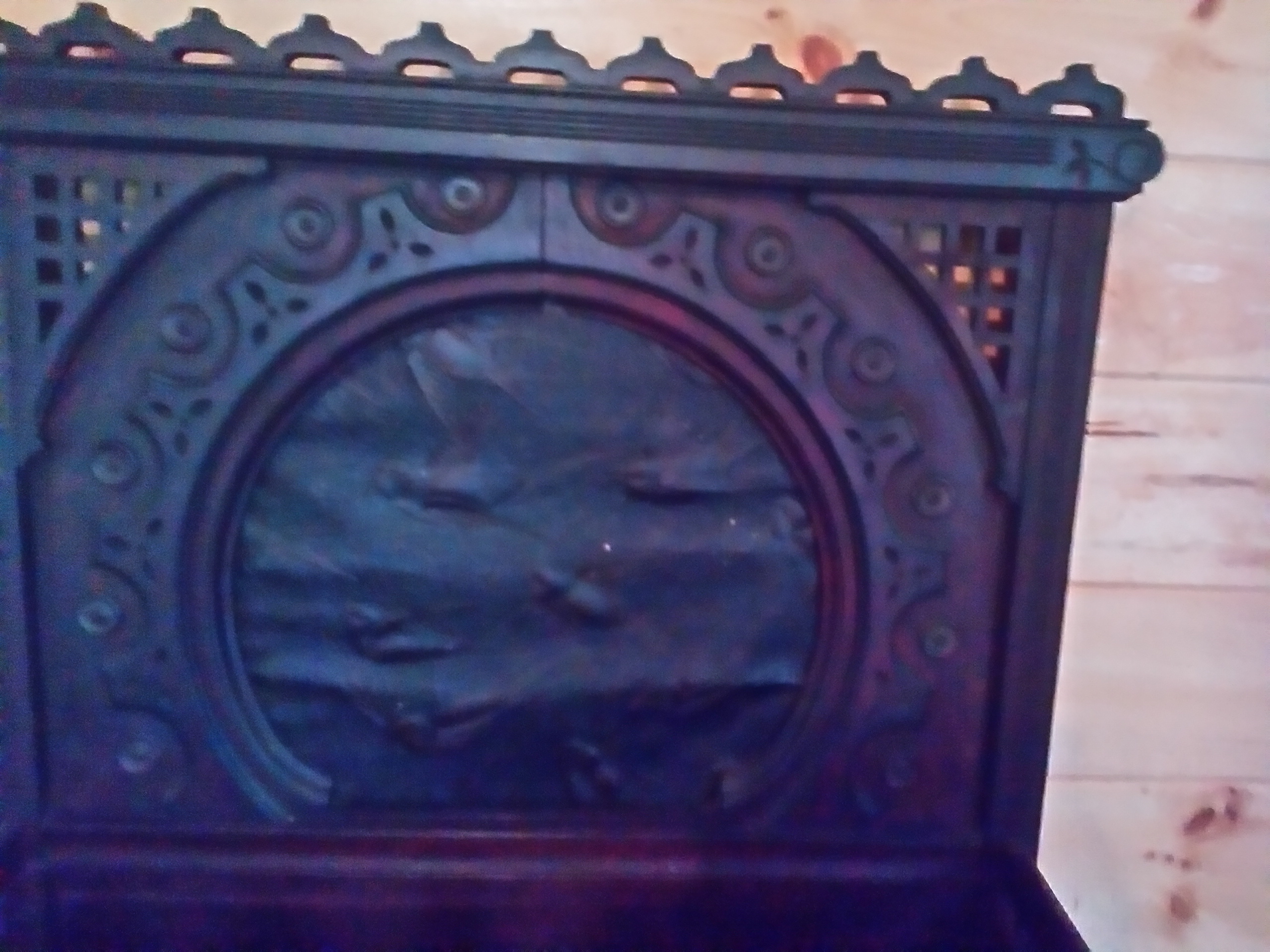 Writing desk top leather circle with birds in flight writing area lifts up for storage above writing area is place for ink it is black in color IV been told it sat in a royal hunting lodge in Europe I was also told it was made between late 11500s ear,y 1600s