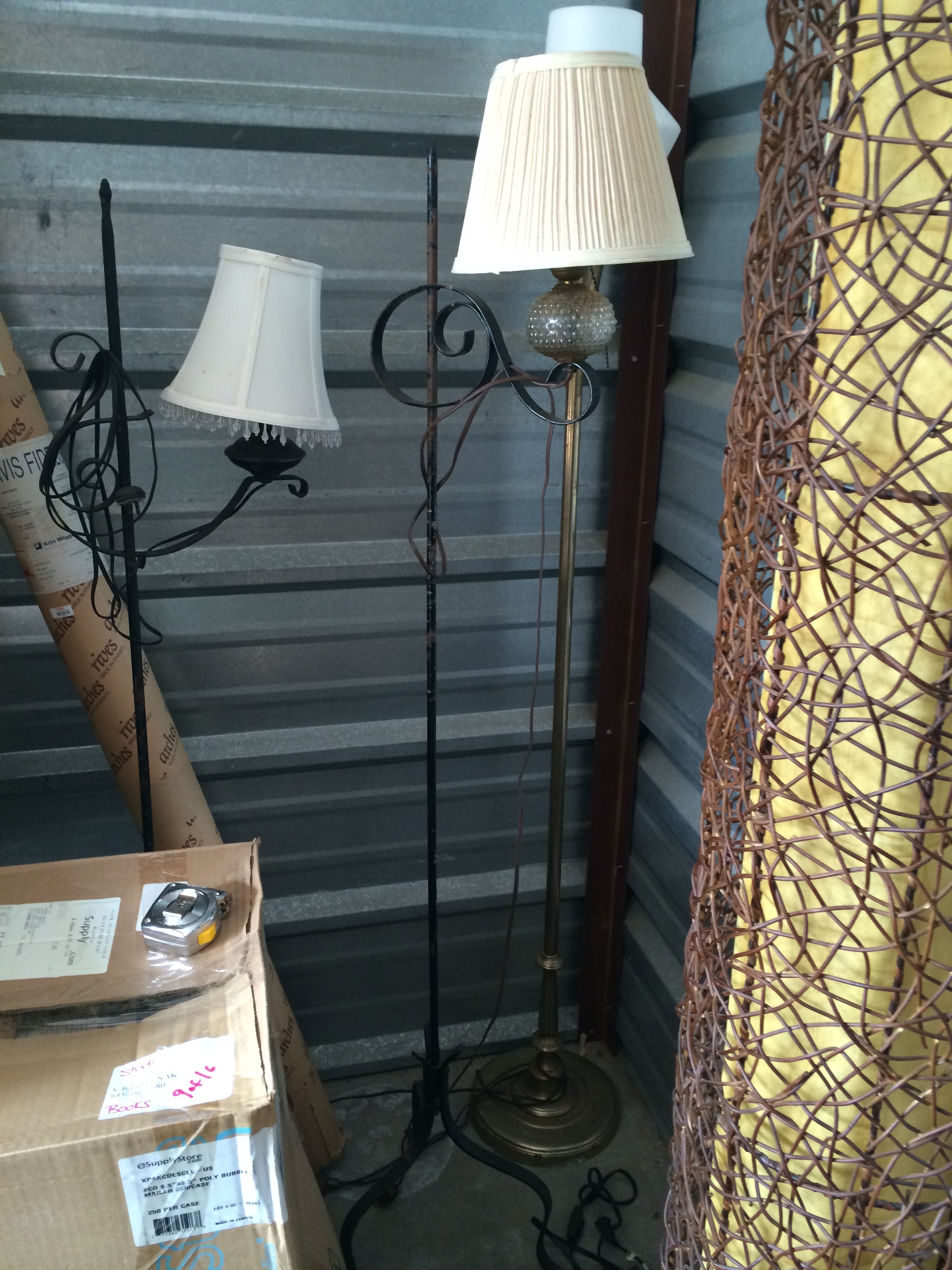 These are old family lamps. wrought iron. They're in good working condition. One is 61" tall. The other is 57 1/4" tall.