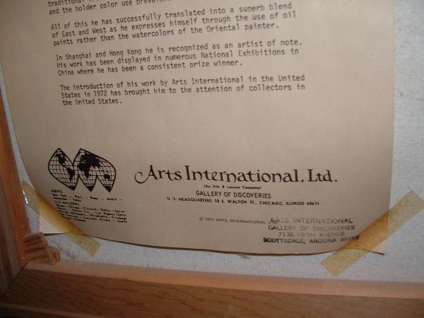antique oil painting 2junks+ small pole boat, blue-grey colors, 23 1/2" x 47 1/2 long
