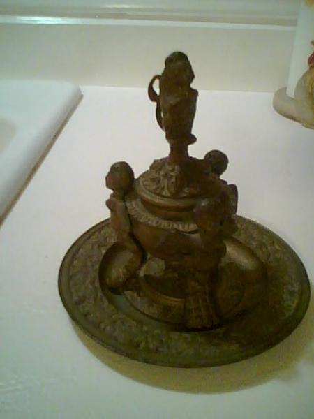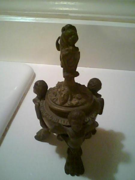 Brass plate with several faces including angels, and one that looks like a ware wolf. A 3 legged pot type item sits on the plate, it has 3 angels with wings and all have one claw foot each. The lid for the pot also has faces on it with a lion on the very top. I am sorry for the poor quality pictures, I just wondered if anyone could shed some light on this mystery item. Thank you. Mike