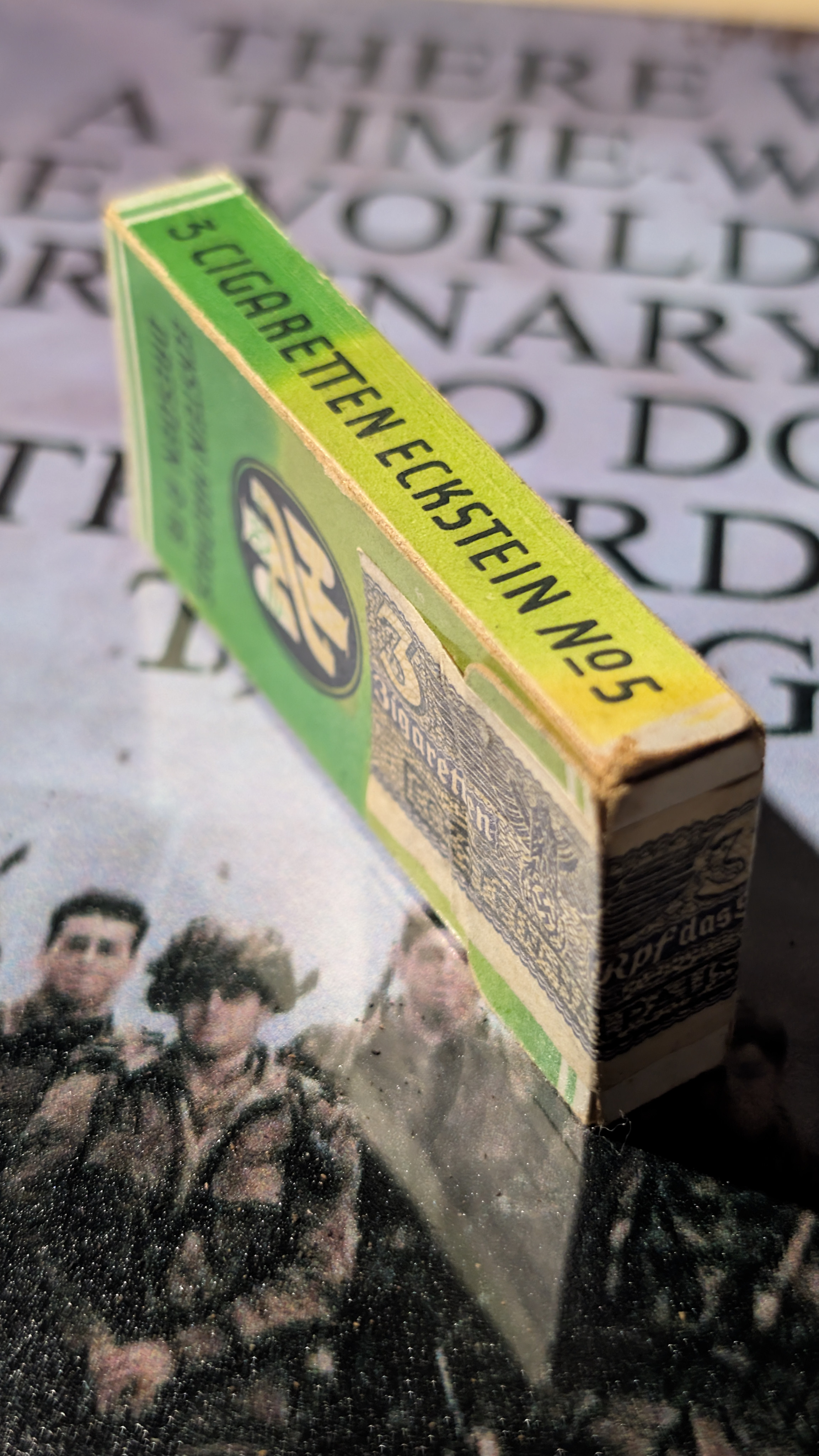 Description I have a pack of eckstein cigarettes. With a tax seal with swastika. Its a small pack of just 3 cigarettes in it. I will add one picture where the 3 pack is next to a 12 cigarette pack so you can see it is small.