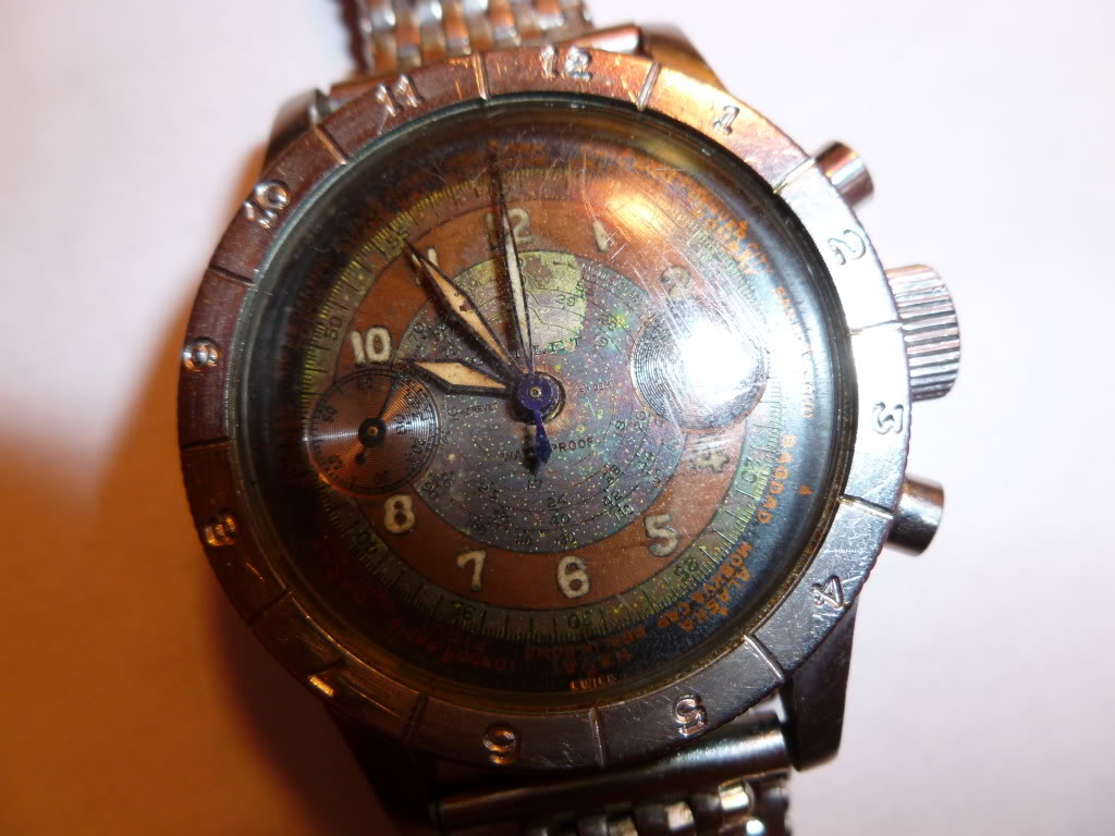 I know this watch is rare enough that Gallet has never seen one in existence. The watch no longer has the original leather strap (my grandfather thought leather was "cheap"). It is completely unrestored but always winds and keeps time excellent.