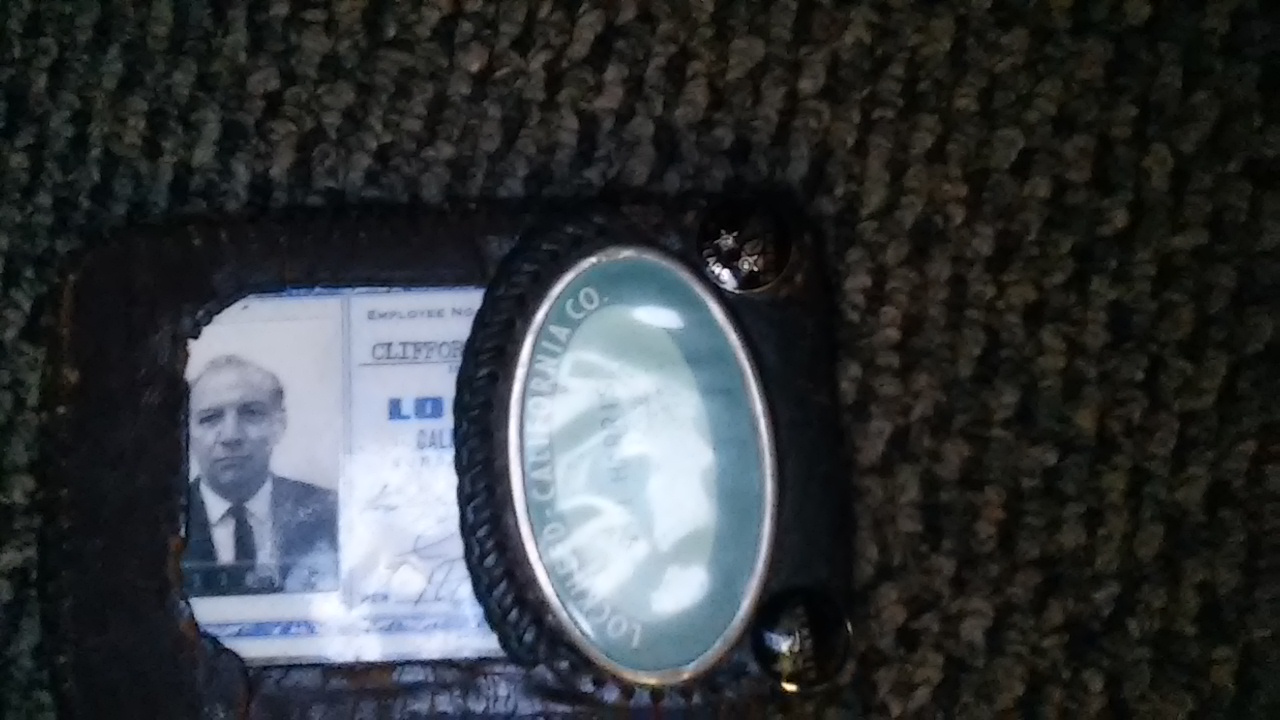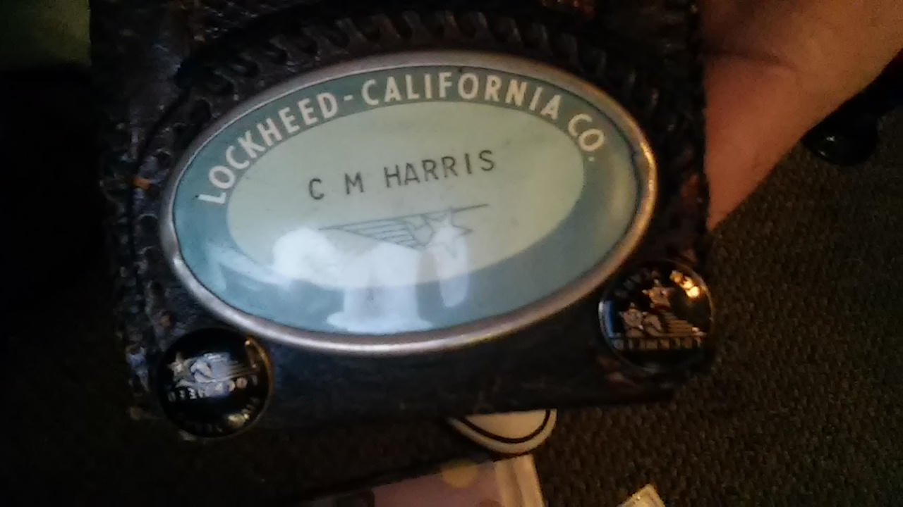 1968 lockheed i.d. badge and two 10 k acknowledgment of time worked at company with photo and finger print height weight in the original leather wallet it was carried everyday to work. Real piece of history here thanks for your time