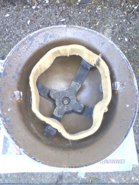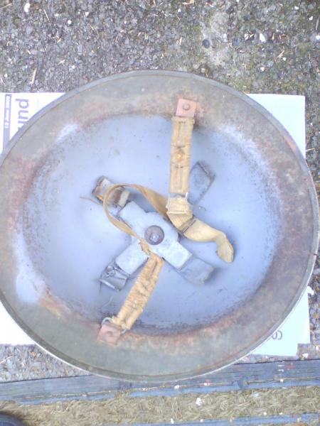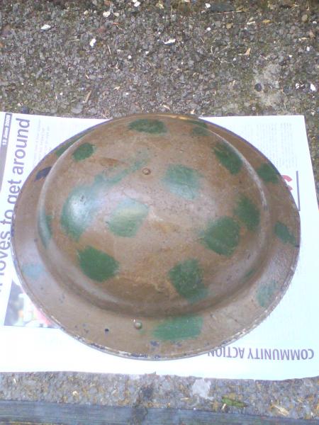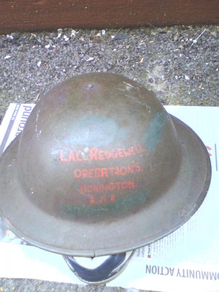 one says. lac.redgwell operations. hornington.RAF / the other is a camoflage helmet