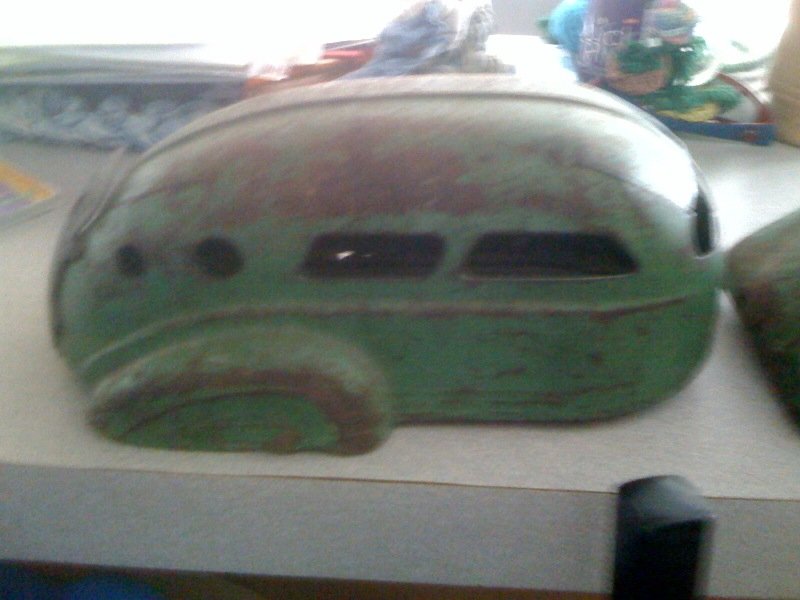 1930 Vintage Wyandotte 11" Streamline Sedan and Airflow Camper. Tires missing and some rust on car an trailer