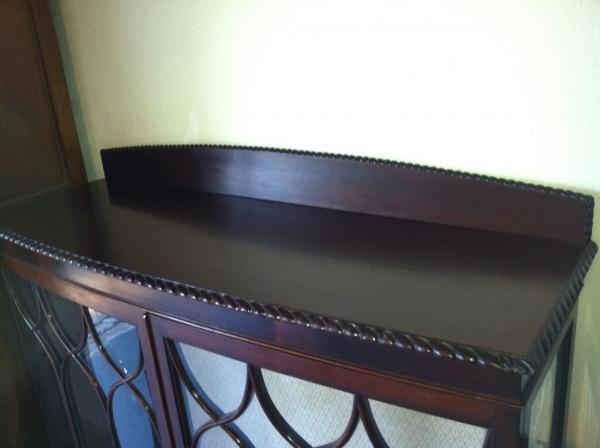 Medium Wood, carved with glass door front and wood detailing over the glass