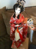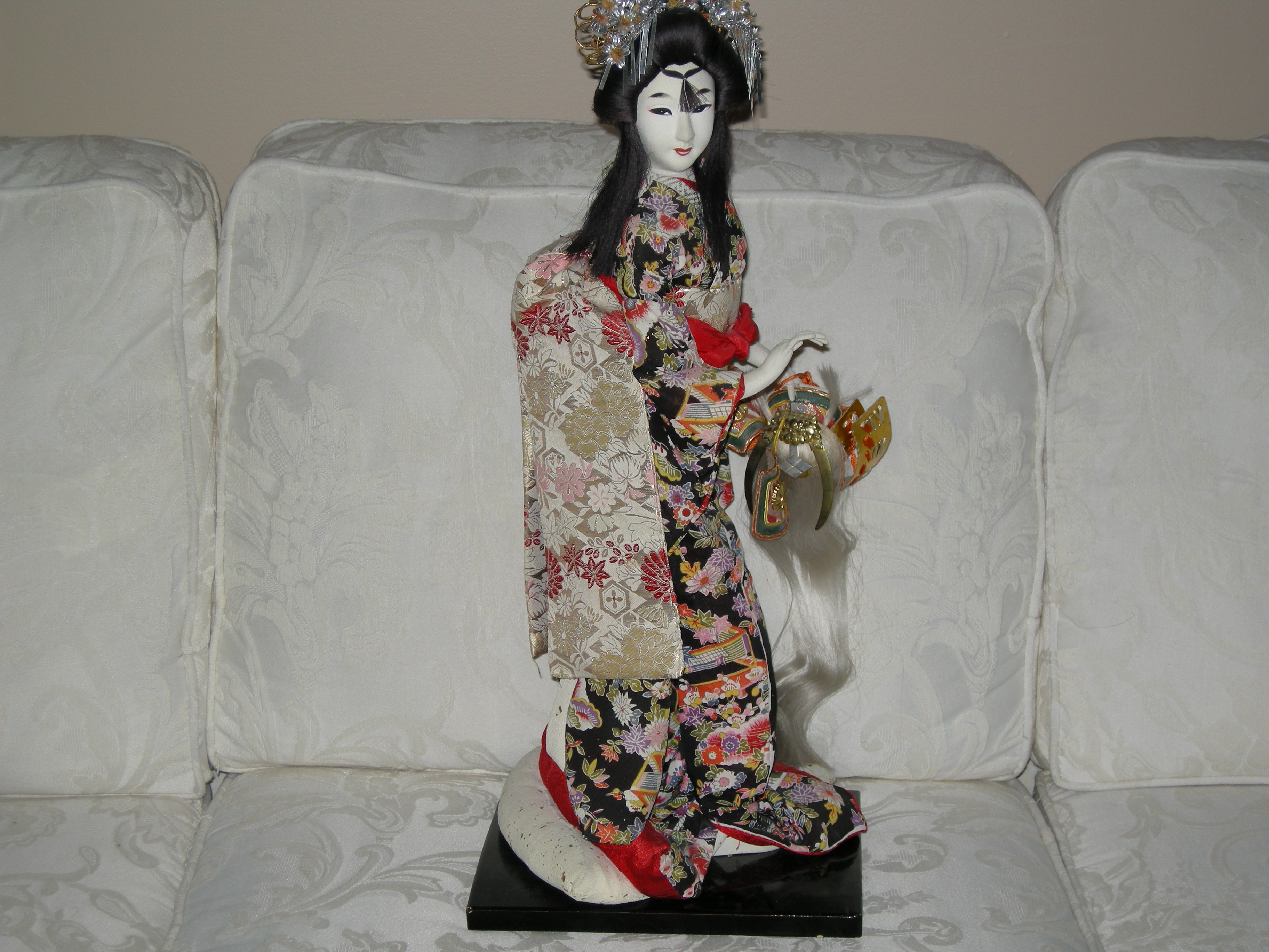 Authentic Yaegakihime. I have been told it is a warrior doll. She has the complete kamomo and holds a gold headdress with long white hair.