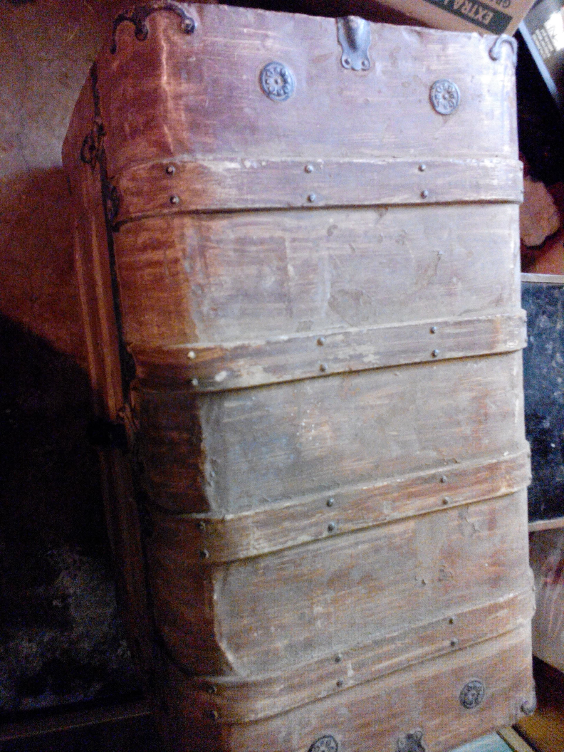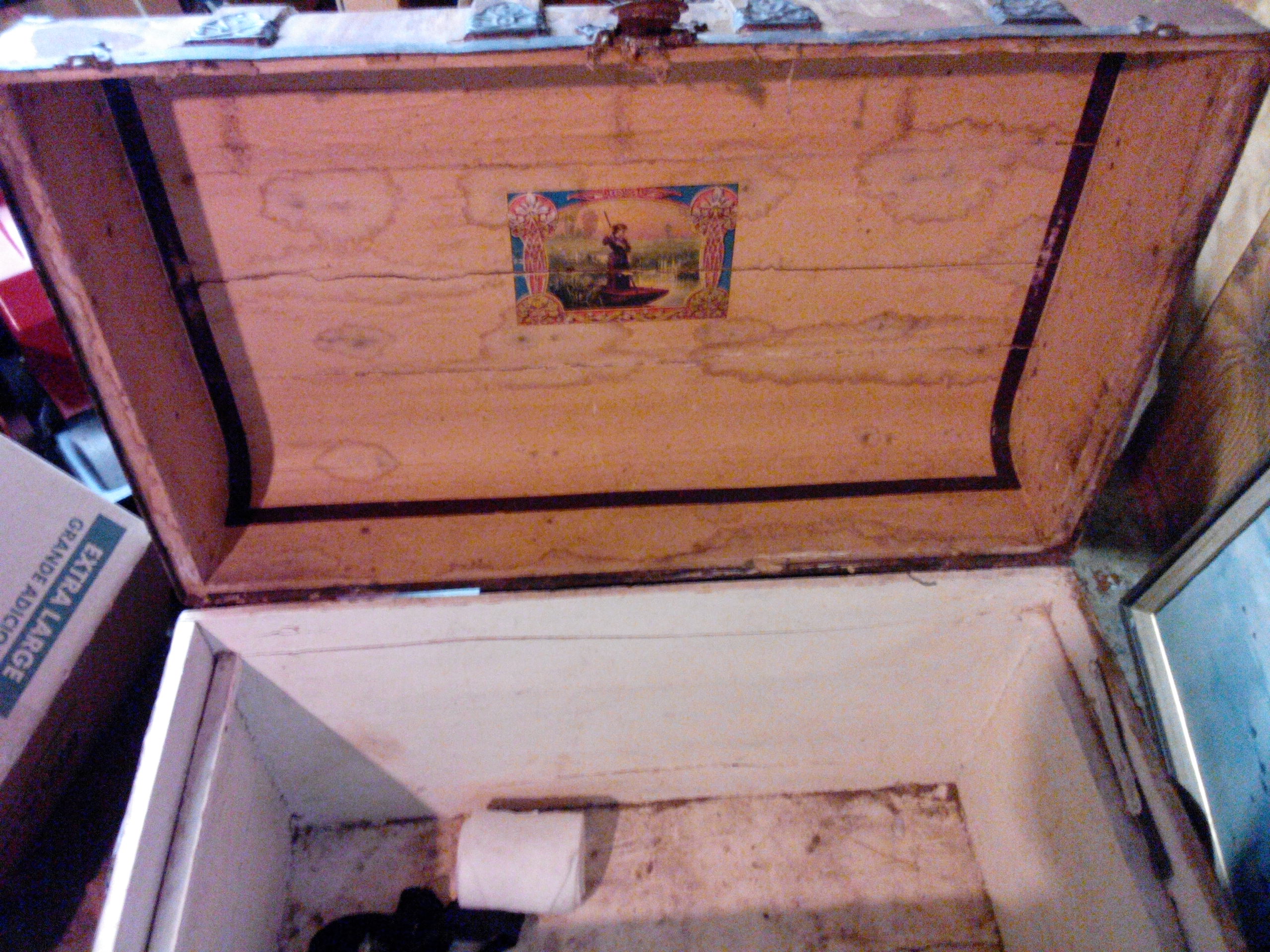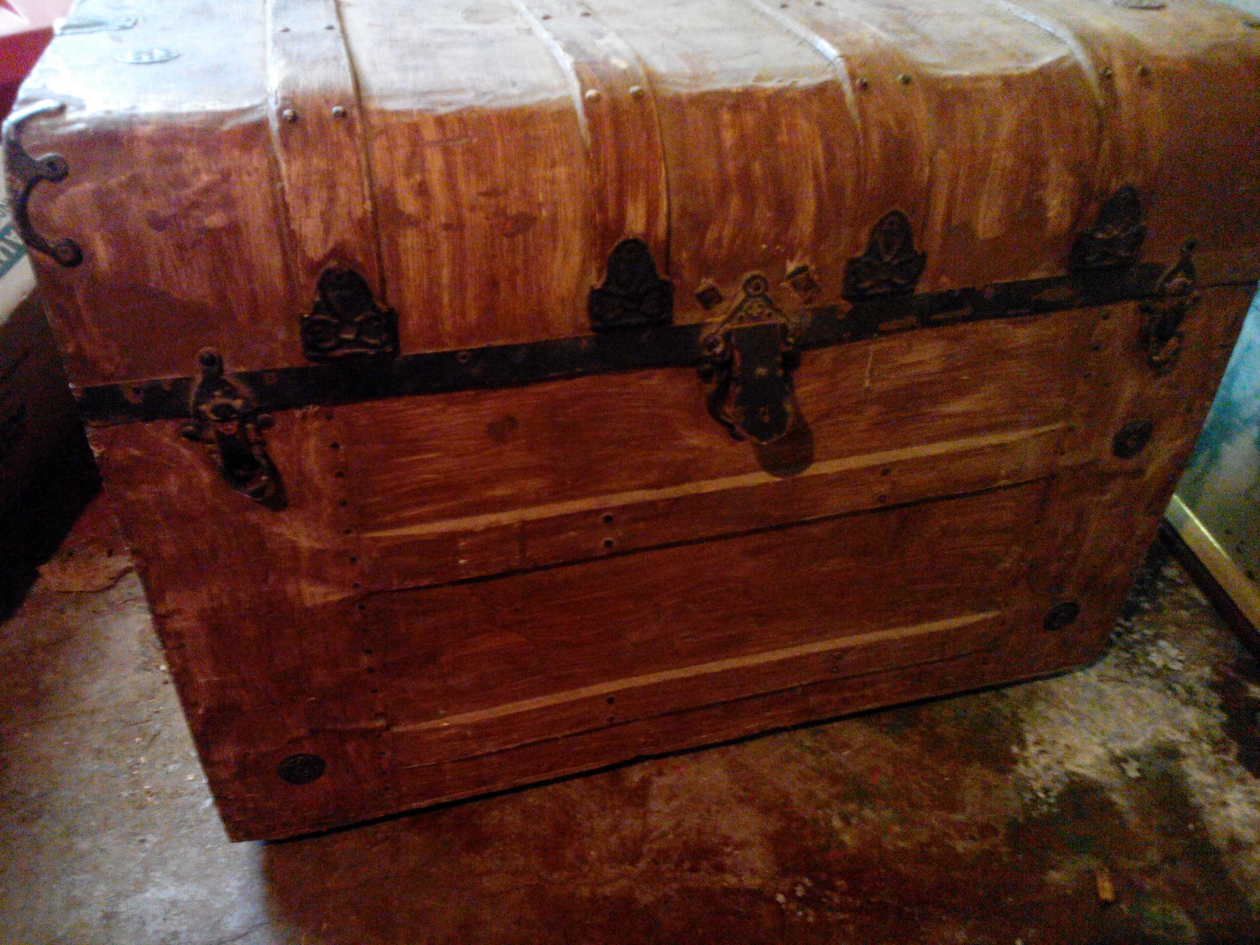 I was giving this trunk and I would love to know more on its history and what it is worth. I did try looking it up. looks like maybe early 1900's late 1800s'? on the latch it says Yale and Towne, this was used as a traveling trunk??,like we use our luggage today?. any help would be great! Does have a little dresser like pull out thing where people would put their clothes or shoes, i can get a picture added later ,just not by the trunk right now. also looks like it was painted over which i know that brings value down alot! so if there is a way i can safely remove paint or resore it would be great! Has an old photo of a lady on the inside top dome .Thanks! It will be for sale as well. :-)
