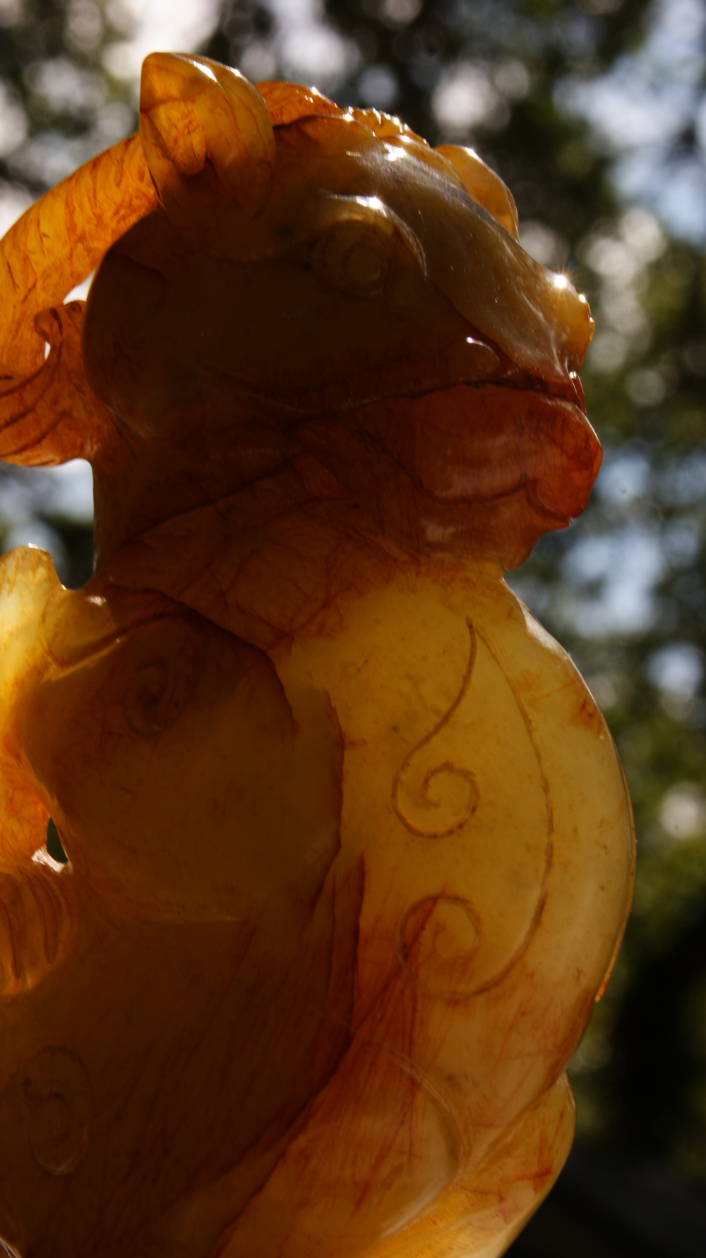 The the transparancy and viberance of color of this nephrite Jade is astonishingly captivating and the character animals seem like they could be out of a Disney Pixar movie.The characters have a proudness to them that make me feel they are important as maybe in the royal courts.