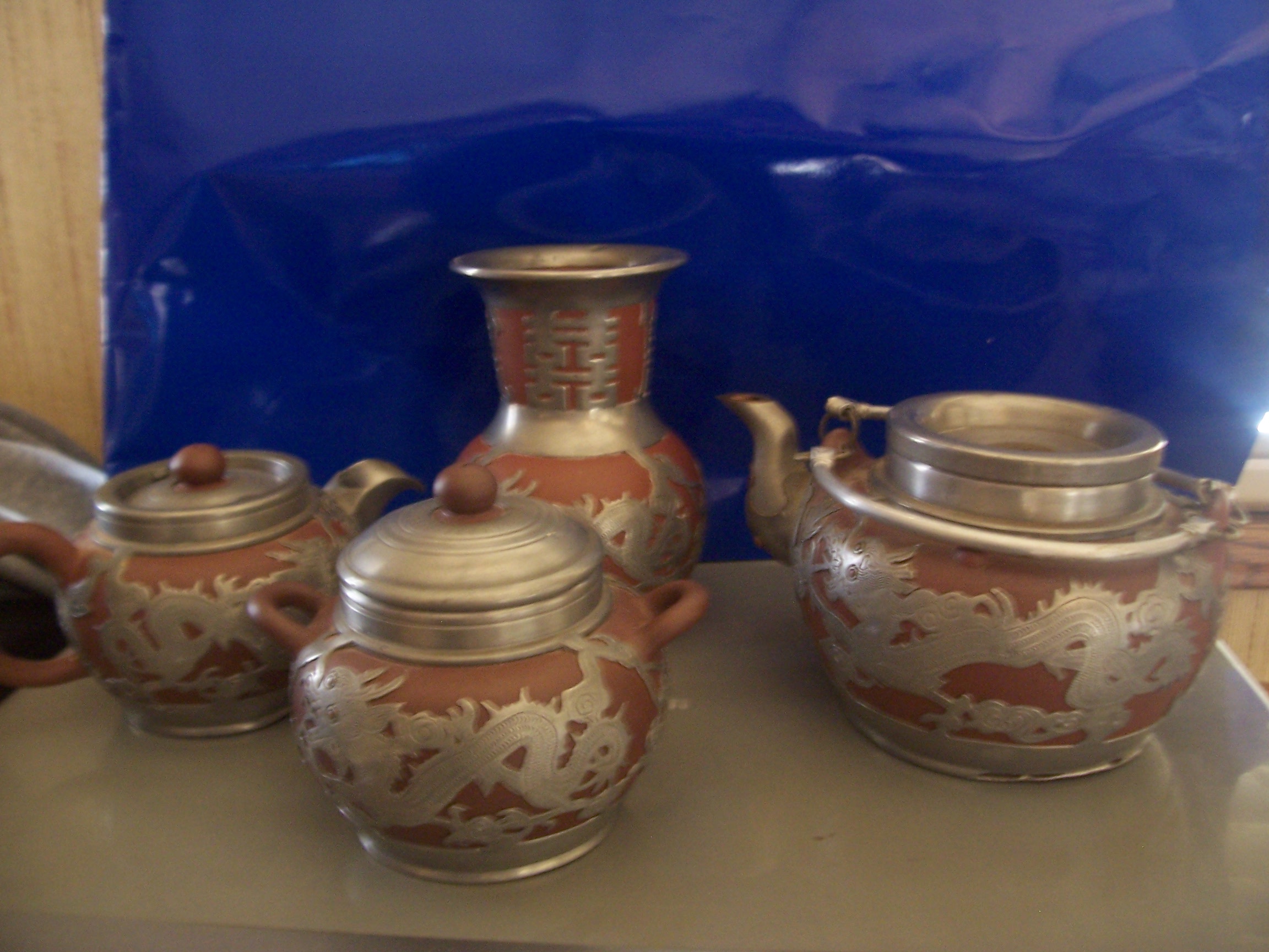 16th century yixing tea set I have many more photos if needed showing embedded gold coins, hand workmanship, etc.
