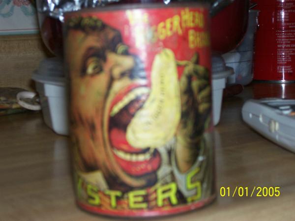 I 8 oz can of York River Oysters canned by Aughinbaugh Canning in the early 1900's This is the "Nigger Head" brand of oysters from this period