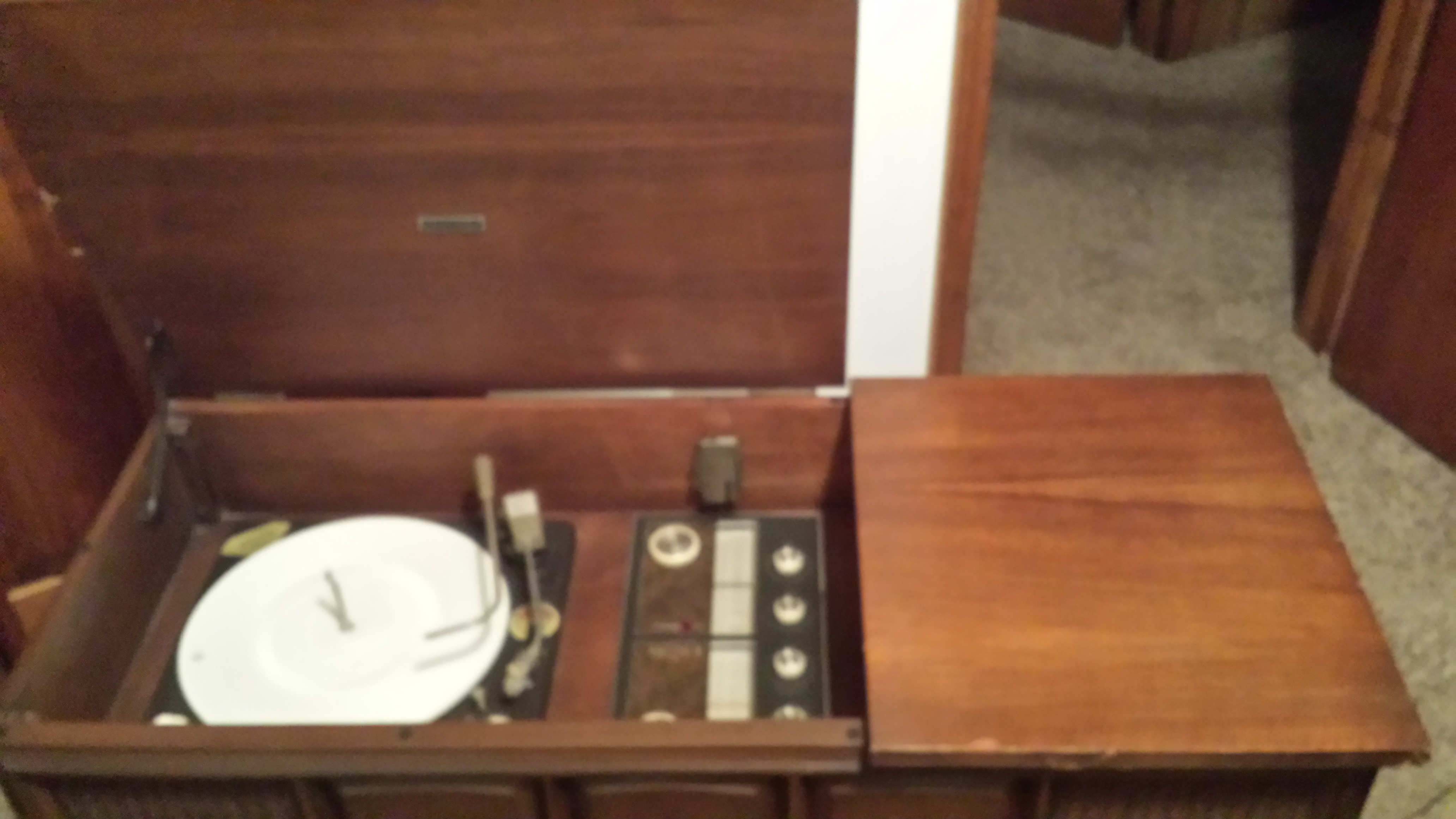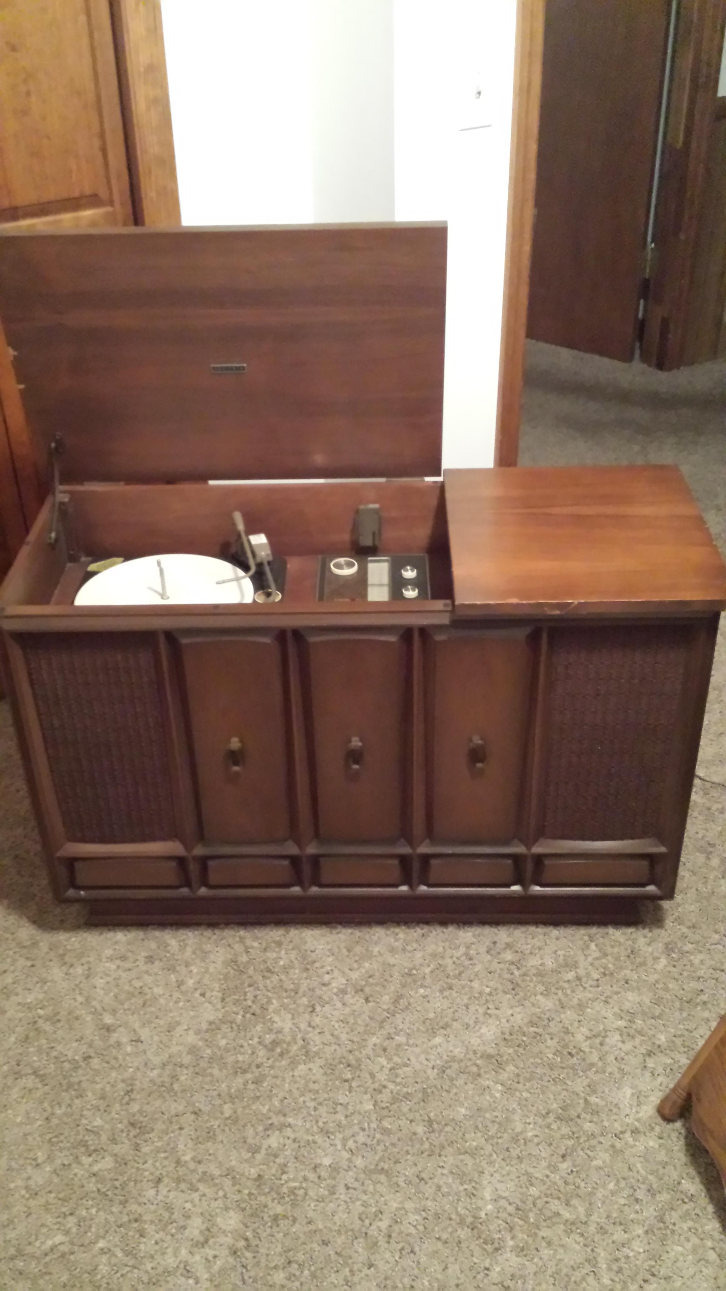 Zenith console record player with am/fm tuner. In very good condition and works great. Not exactly sure what year, I have done a lot of research but couldn't find anything. So if you could provide that for me as well I would greatly appreciate it. Thanks