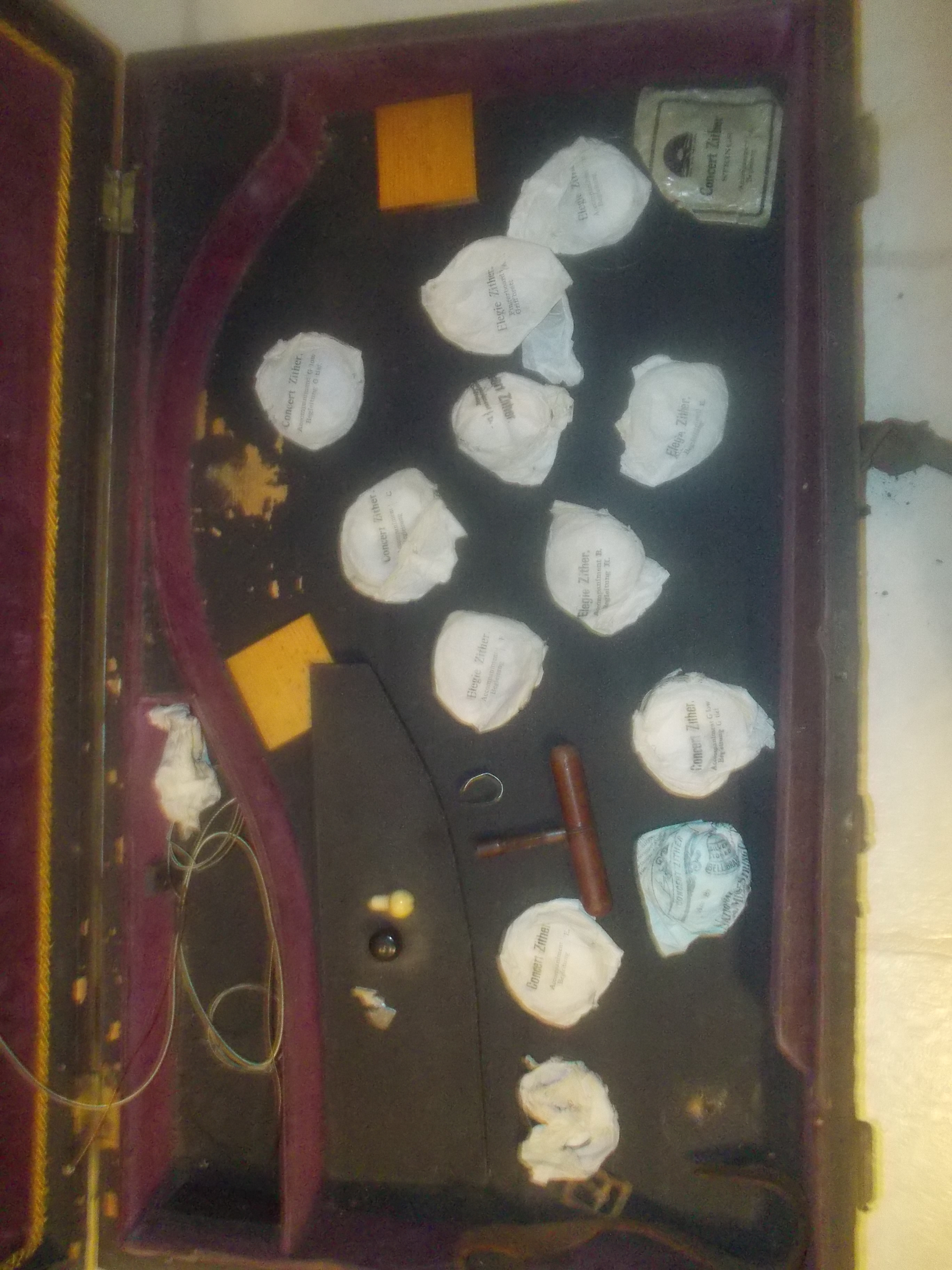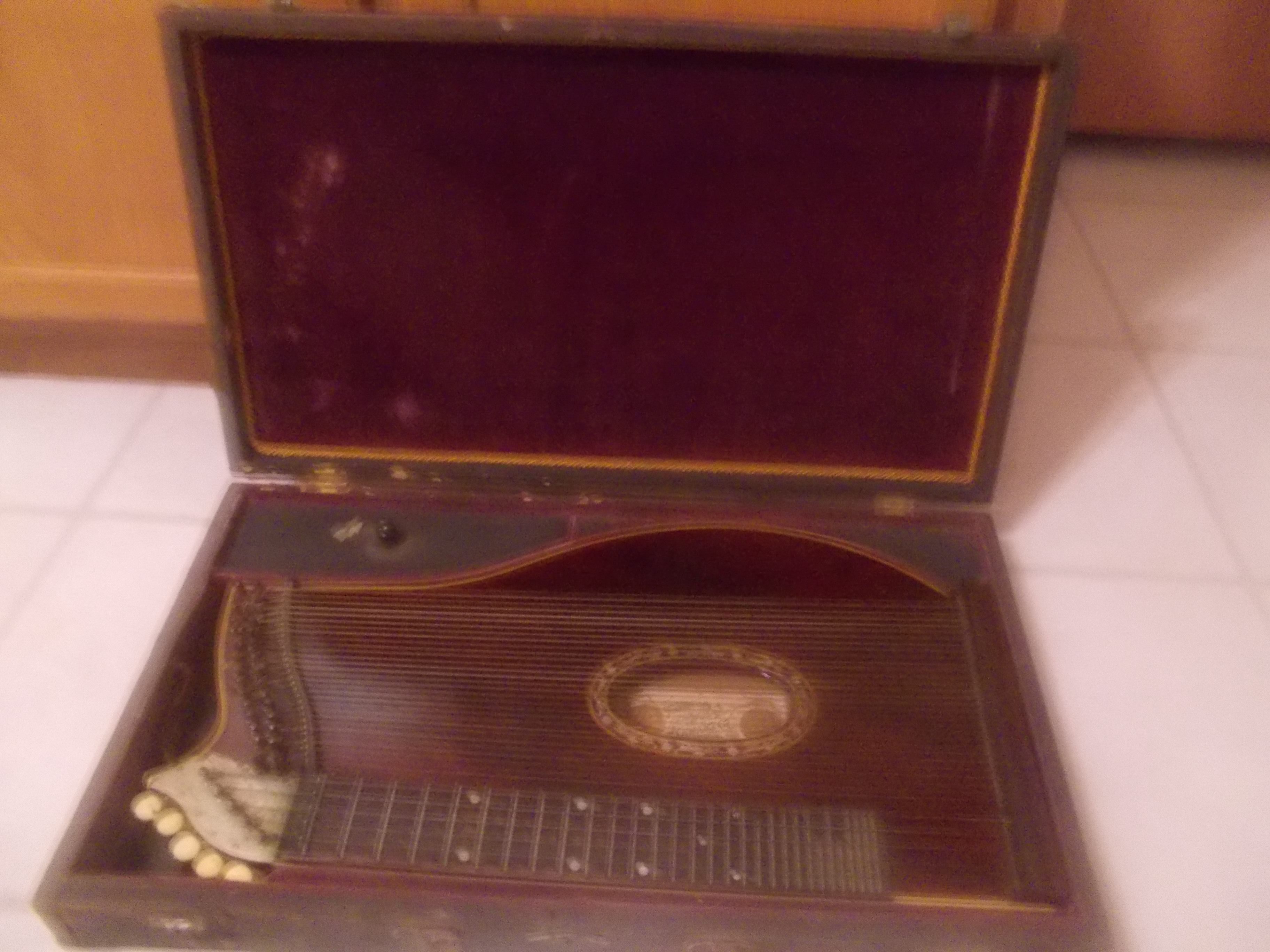 This Zither has been kept well it has extra strings still in packages, (C,F,E,E2,Acc-B/2, G low, D, B-(H), E, G low, G tief, A, F) tuning device, an extra ivory knob, case- hinges still locks all metal corners intact, handle has deteriated,ivory legs, lining looks great , music  book- A. DARR method for zither , also a leather bonded book Zither Album 26 ( all intact no rips still bonded) i have more pics than posted  i am intrested on any information about this instrament and value