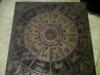 Well the Picture's really explain it alot! Its colors are dark brown, gold, white each symbol is very well drawn very beautiful piece it's shaped like a shiled but i don't believe it's made of metal possiable a ceramic but could also be a hard plastic by the way it sounds when you tap on it. I would really like to know more aboout the history of this because it caught my intrest from the moment i laid eyes on it and it would be nice to let my grandmother know more about it she is currently being treated for cancer so I think it would be some thing that would really bring her sprits up to know what she has been dragging around with her all these year