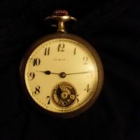 Check the dial face, movement (inside the case), and case for maker names, labels, or stamps. Movement serial numbers can often be researched online through collector databases and horological societies.