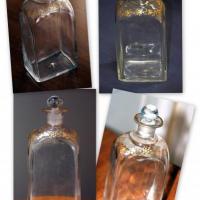 French Antique Lead Crystal Ashtray w/ Hand-sculptured 24Kt Gold Gilded Ornate Pewter Base