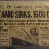 The Boston Daily Globe's original newspaper article "TITANIC SINKS, 1500 DIE" april 16, 1912