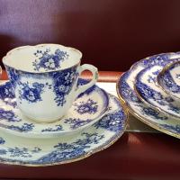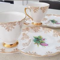 3 Cups and saucers and 2 bread and butter plates and 1 Dinner? plate ROYAL ALBERT CROWN CHINA