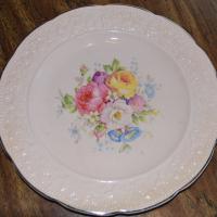 The Edwin M Knowles China Co., Roselace Setting - Pink China with Flower design and Platinum Trim