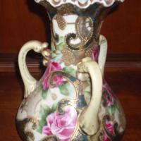 Nippon 12" Three handled handpainted rose vase with raised dots no watermark on bottom of vase