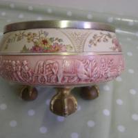 Wedgwood - claw footed bowl/planter - top half floral and gilt painted, bottom - pink relief frieze