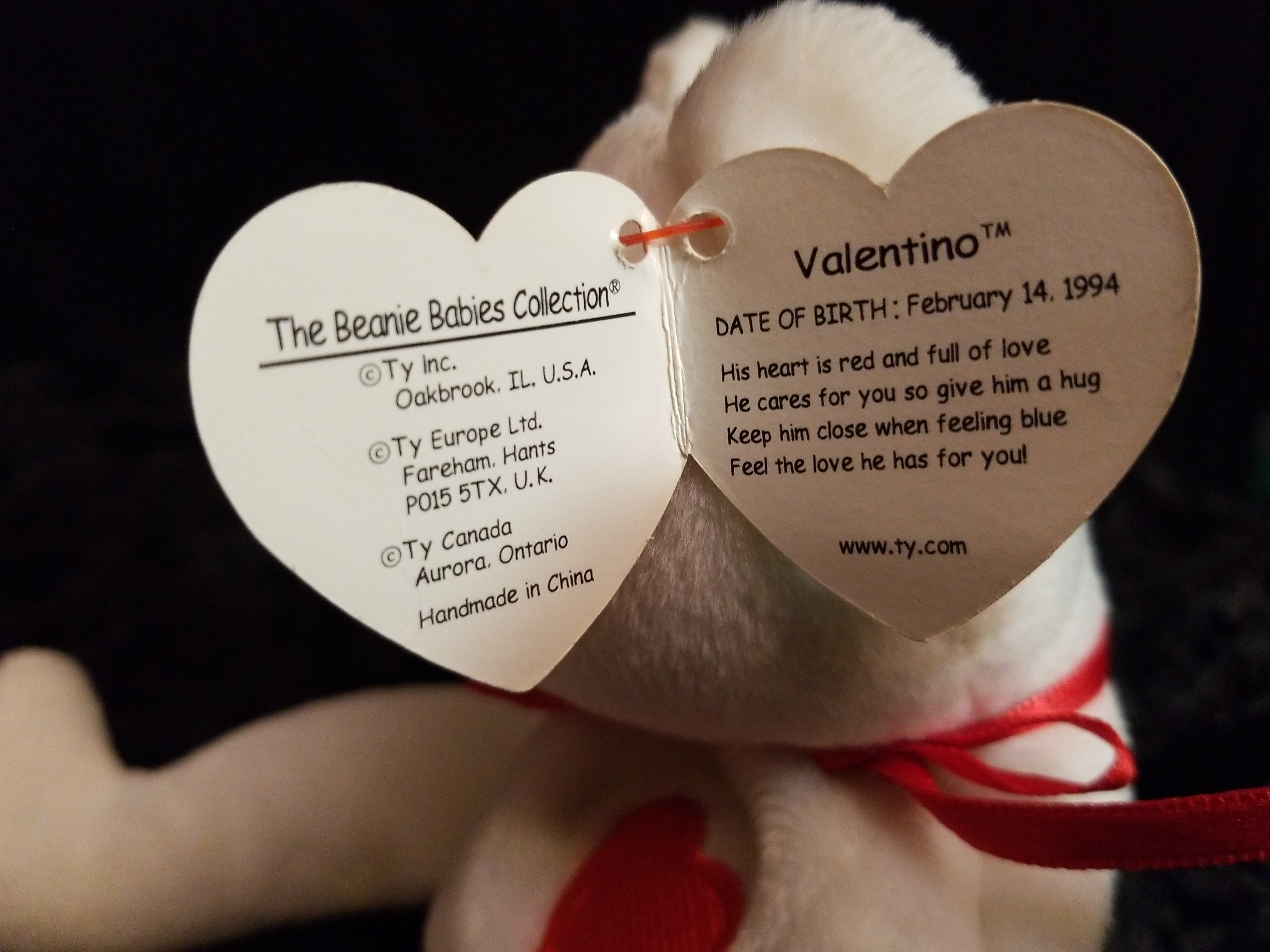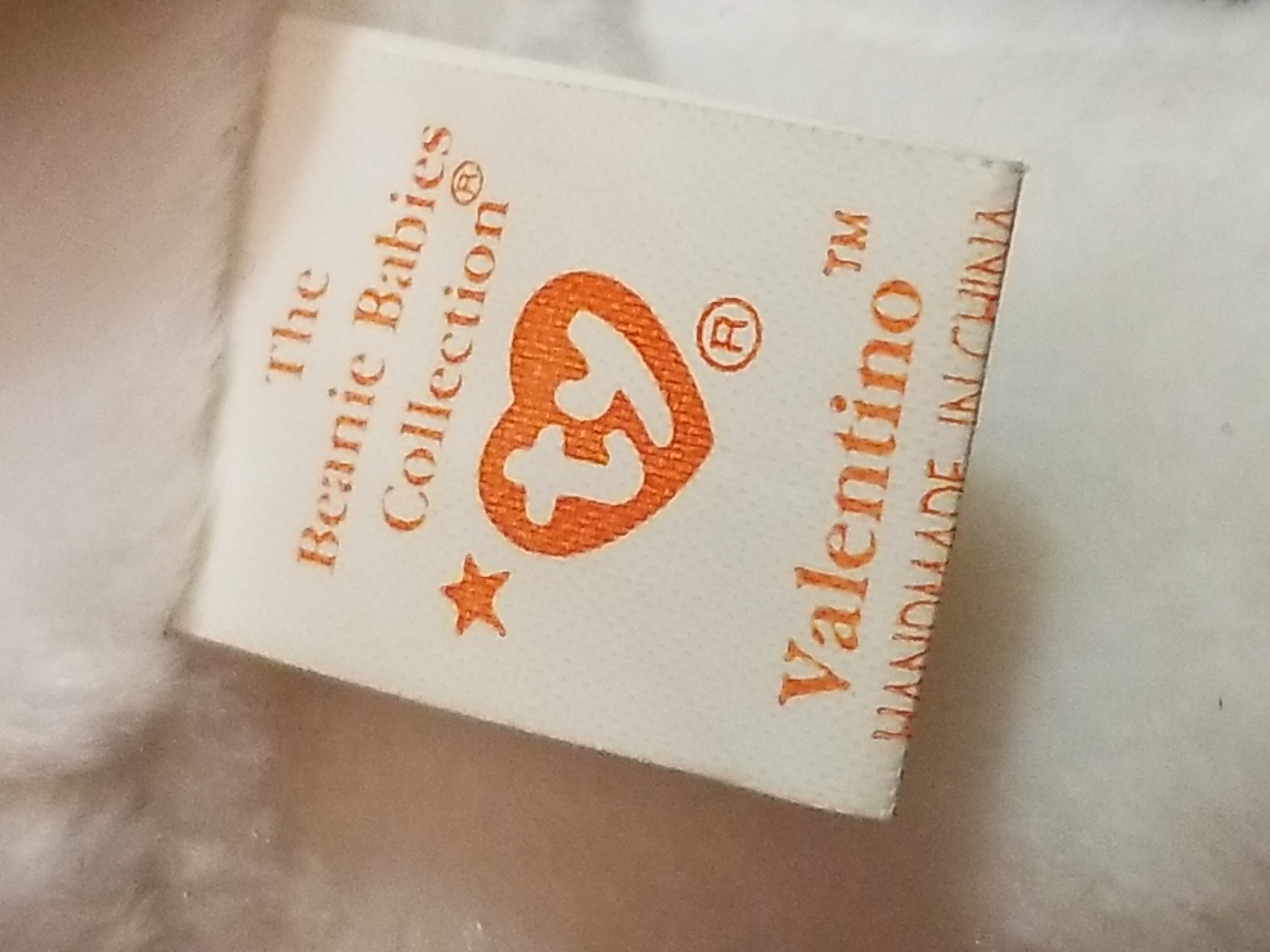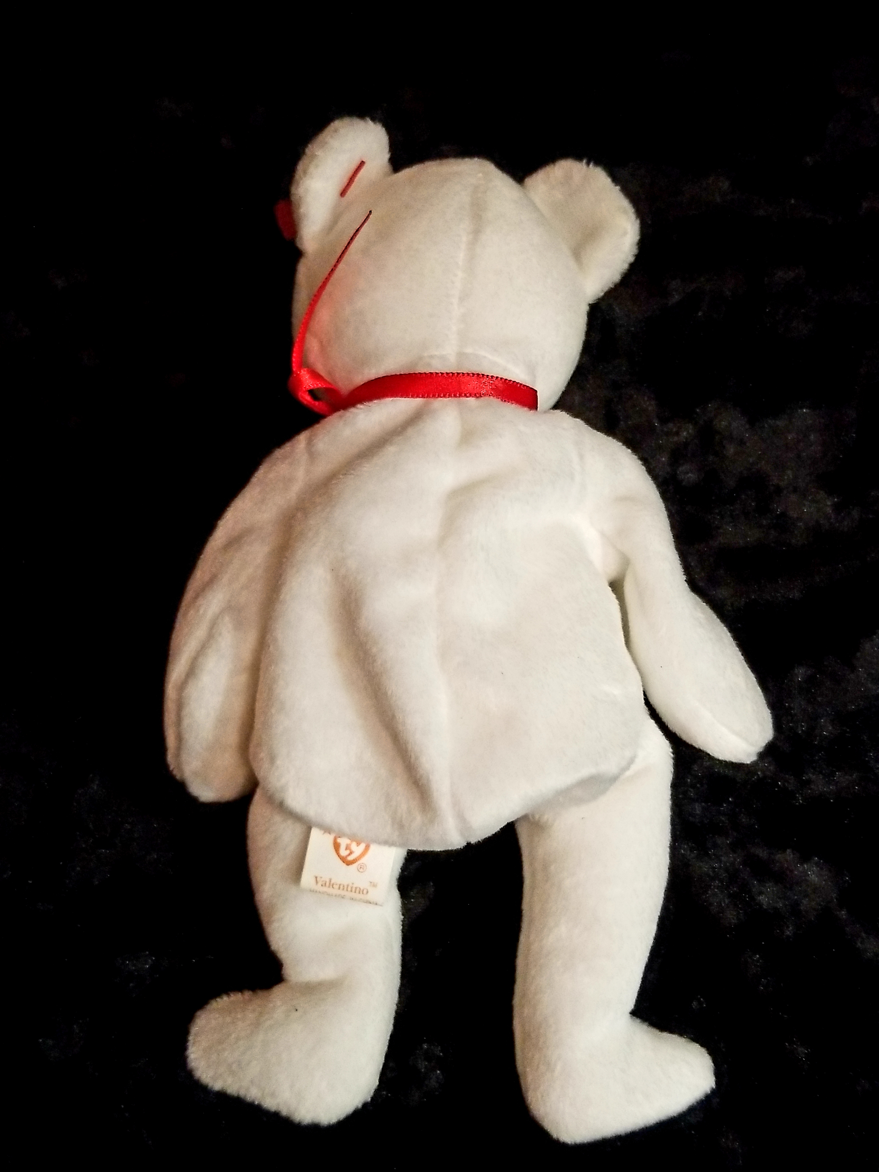 Valentino beanie baby. 1993 hang tag date/ 1994 rush tag date. P.E.pellets. NO settling of the pellets, sits upright without any slumping or leaning. Adult owned. Smoke free/pet free home. Has a pinhead mark on each arm.
