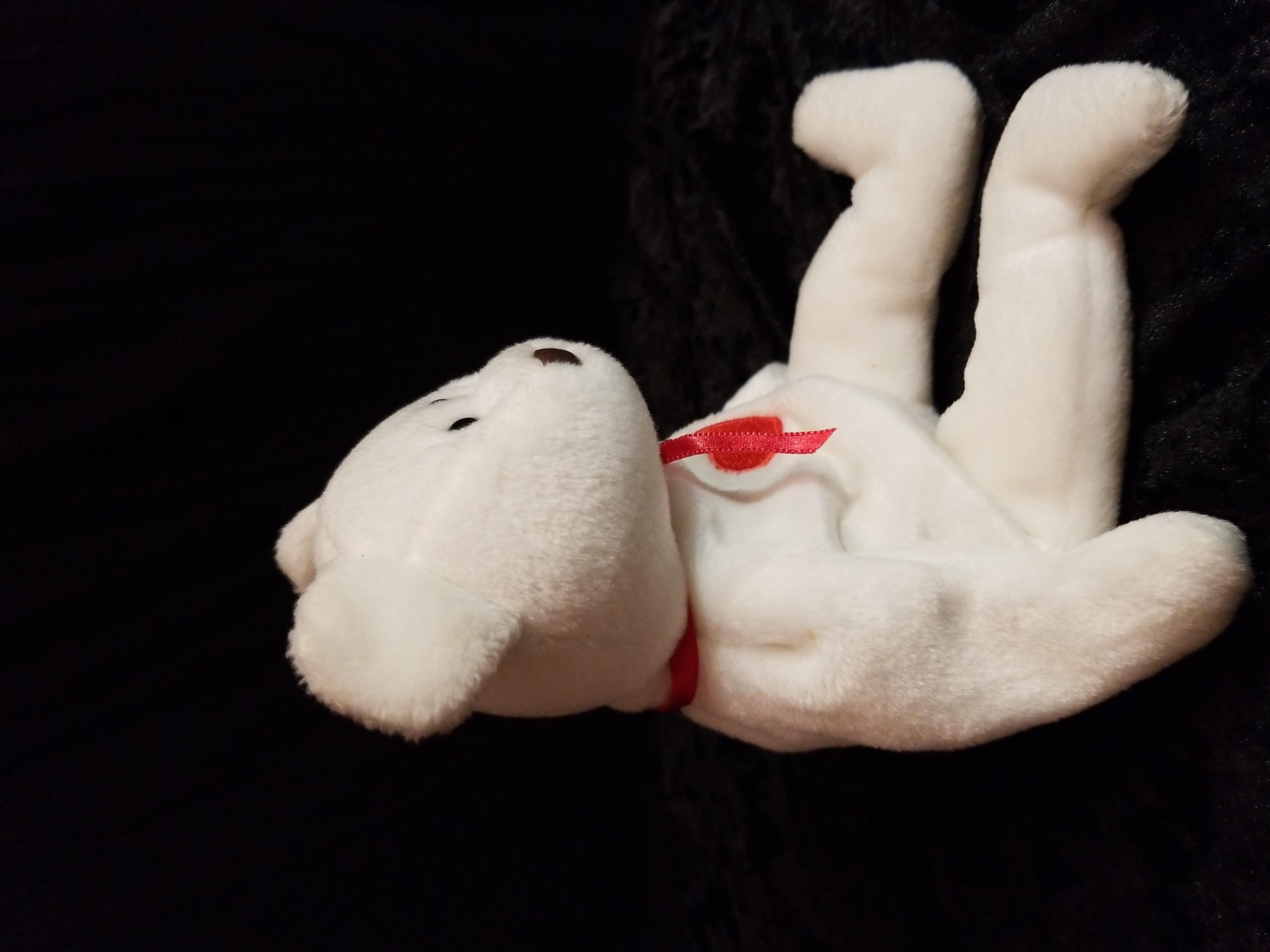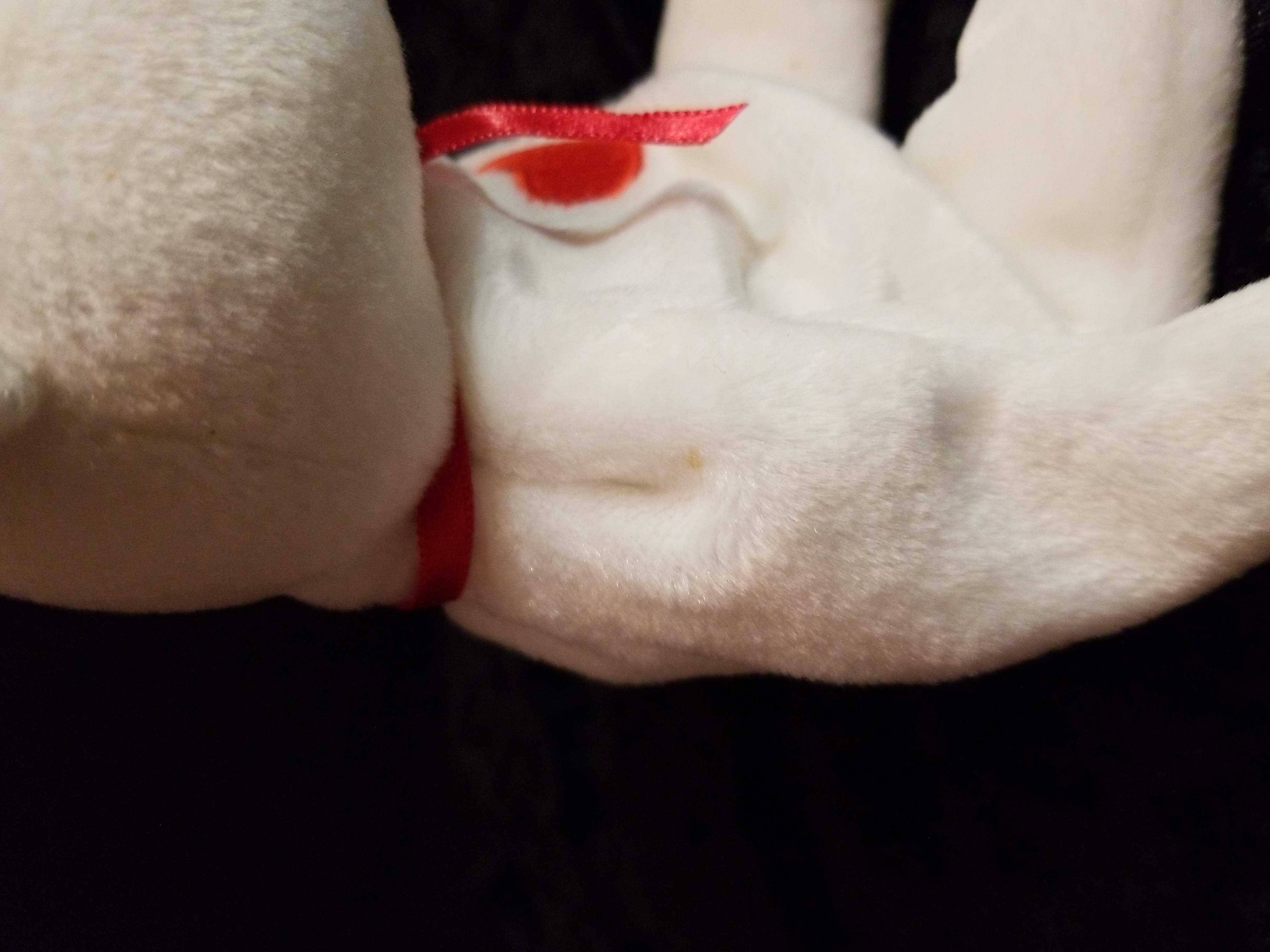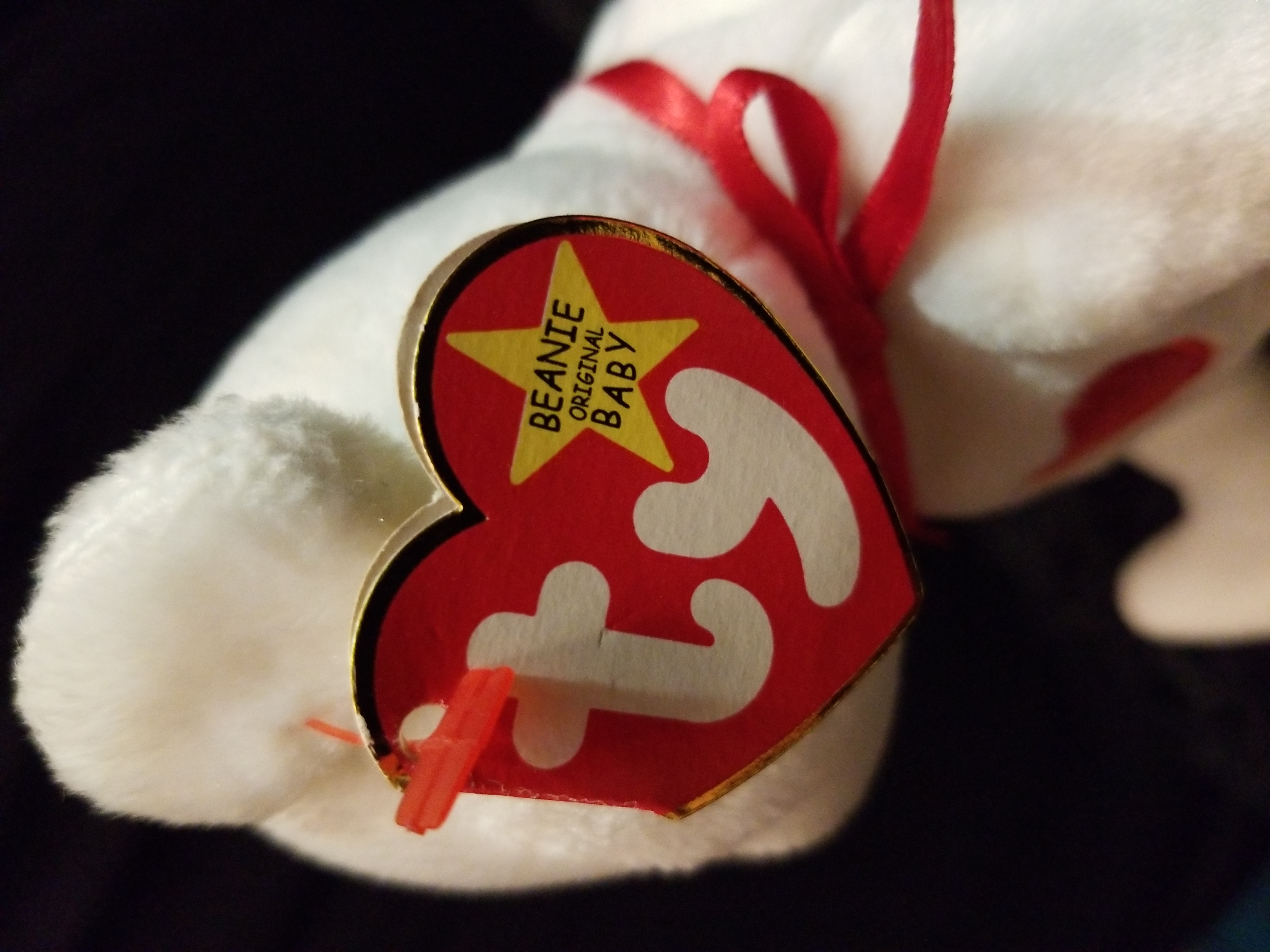 Valentino beanie baby. 1993 hang tag date/ 1994 rush tag date. P.E.pellets. NO settling of the pellets, sits upright without any slumping or leaning. Adult owned. Smoke free/pet free home. Has a pinhead mark on each arm.
