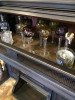 This is a decanter set that was owned by my great aunt. She worked for a dentist for a long time, and the dentist brought this set back from Germany as a gift in the 1950's or 1960's. I'm not sure if it was purchased new or as an antique at the time. It doesn't have a maker's mark that I can find. Everything looks hand made with painted gold and flowers that are raised. Looking for a value to sell or trade for .999 silver.