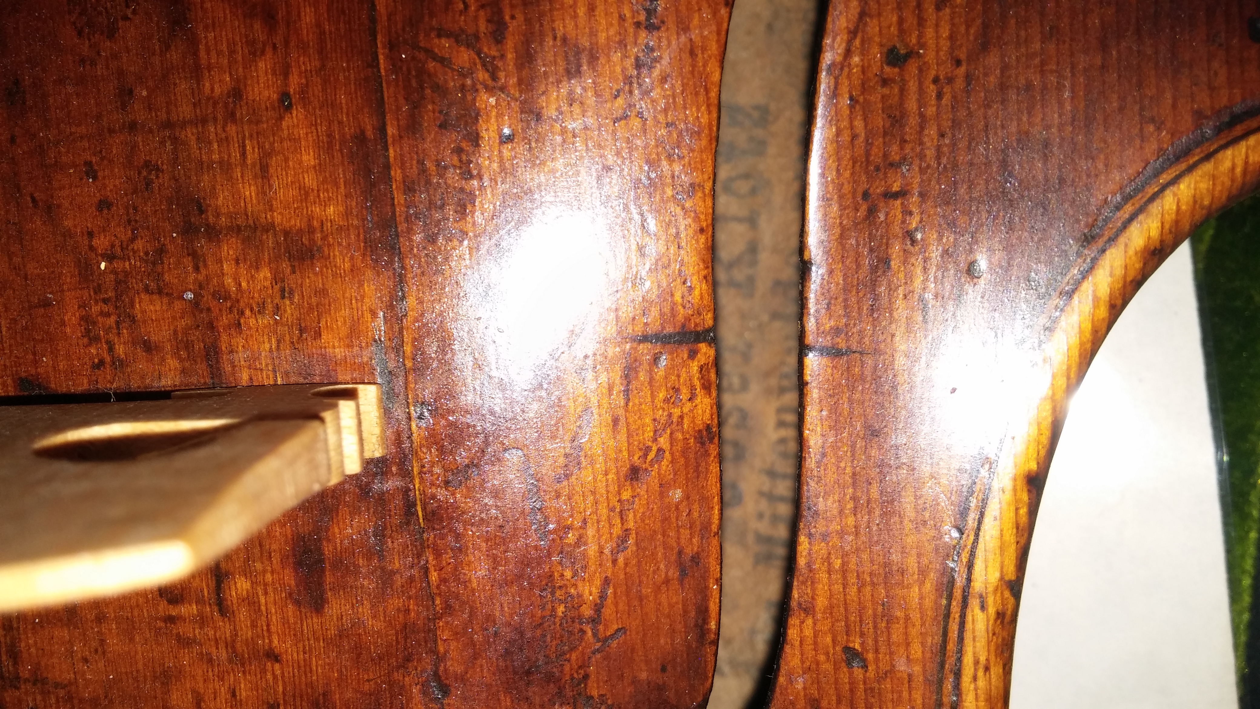 My suggestion though to get the best answer is to go to a local violin shop (not a music store) and have the luthier take a look at it. They can give you (almost always for free) a good idea as to actual age and authenticity along with the quality of the workmanship::::: I try and look at something and see if it's been faked or a Repro. ANYTHING that makes it look real... Anything that makes it look to good to be that old.. I have spent a few hours looking for something wrong with yours............. " PLEASE NOTE" In no way am I saying I'm and Expert.