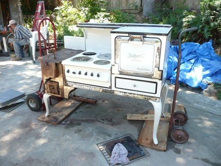 It was given to me by a friend. It was her grandmothers. It has been stored in the garage of her home which is over 125 years old. The electric coils are in fairly good shape. One has been replaced with a more modern coil, but still old. It has all of the original parts. The firebox is still intact, but it should be replaced because of cracks. The deep pot burner is all intact. Nothing is missing. Still has the broiler pans and utensils. The porcelain still looks new. The Chrome is the only thing that didn't last.