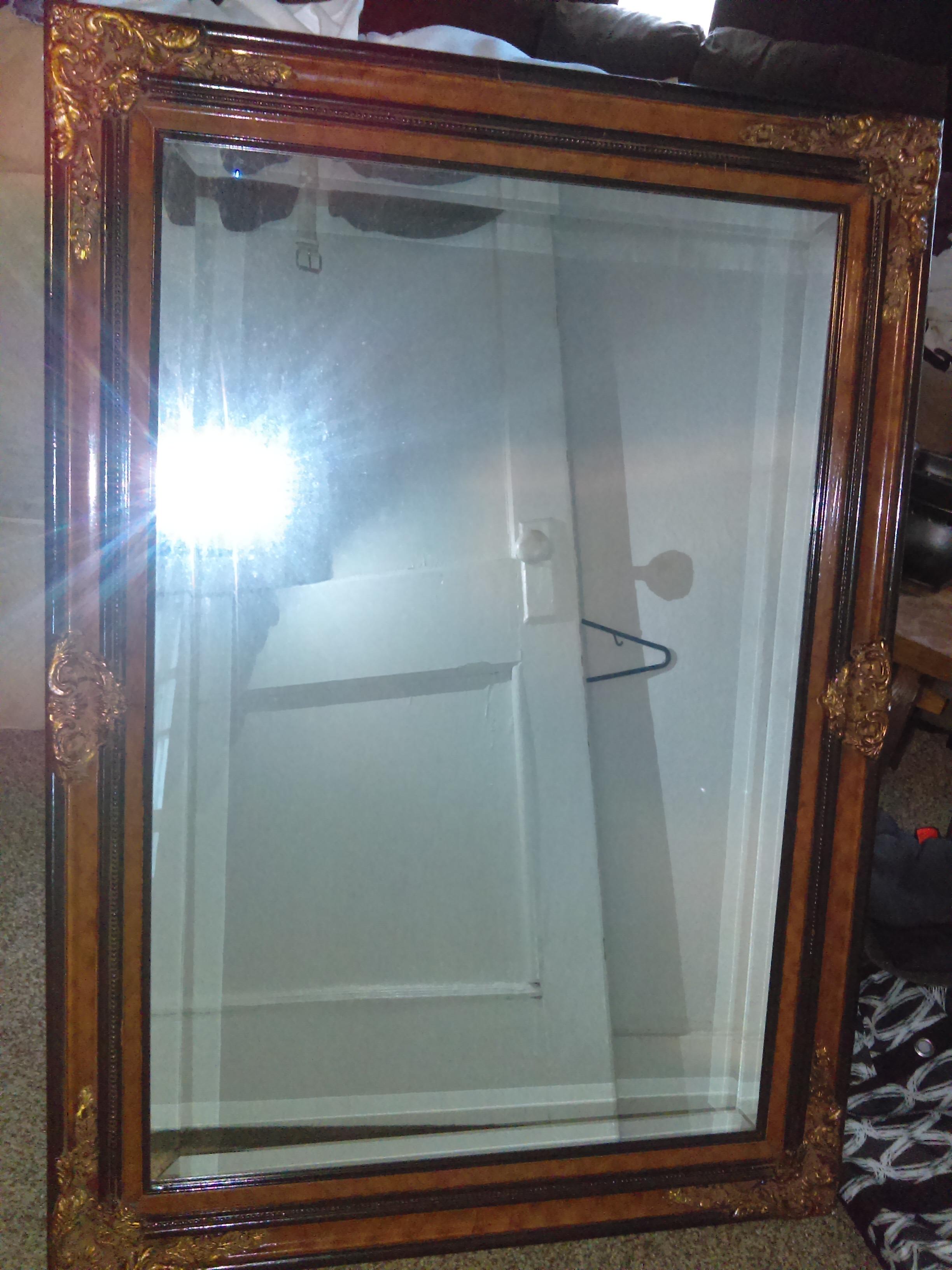 Mirrors like this tended to be used over Fireplaces, often referred to as "Over Mantel" type mirror when hung horizontally. Most like this one tend to date from the turn of the 19th century and sell for about $350.00.