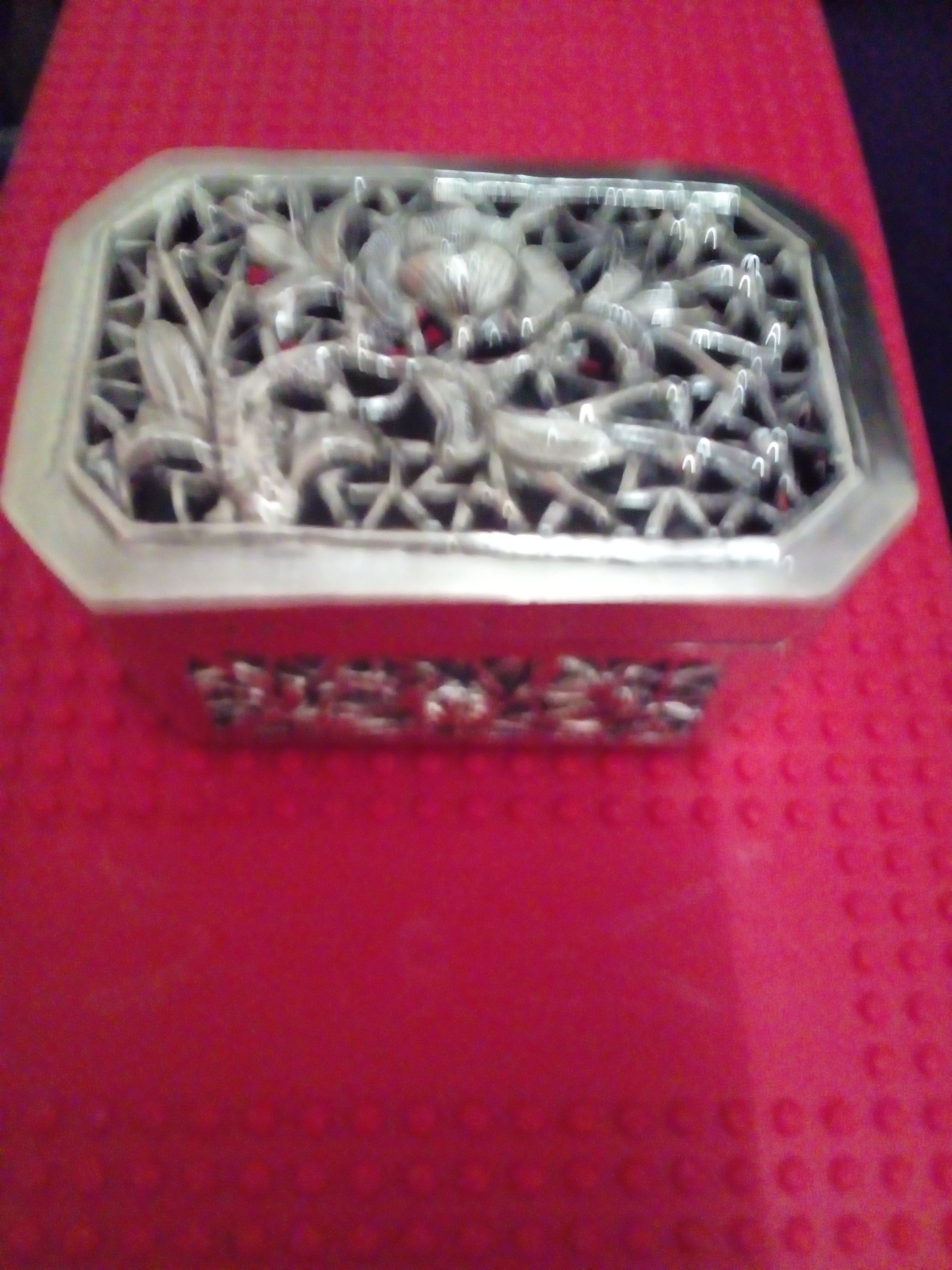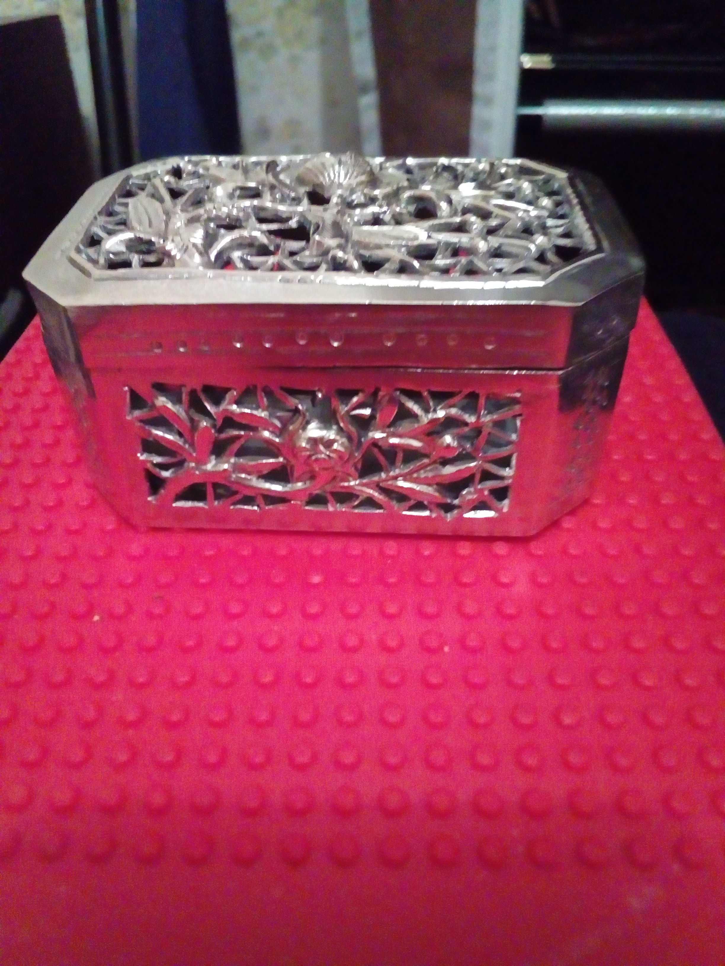 Based on what I can see in the images and lack of any markings, it's highly unlikely it's silver. By international conventions items made of precious metals are nearing always marked. This looks very much like the Art Nouveau style pewter items made during the 1980's, which at present have very little value except as decorative items